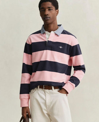 Heavy rugger shield polo streep donkerblauw rozeVerkoper:GANTHeavy rugger shield polo streep donkerblauw roze