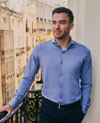 Knitted jacquard polo lichtblauwVerkoper:SuitableKnitted jacquard polo lichtblauw