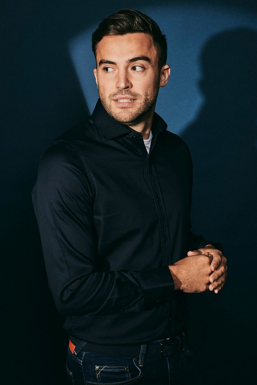 De slim-fit pasvorm en de getailleerde fitting zorgen voor een stijlvol silhouet, perfect voor de heren die succes willen uitstralen. De Kent boord geeft een tijdloze, stijlvolle touch aan uw outfit en de enkel manchet zorgt voor een nette afwerking.
