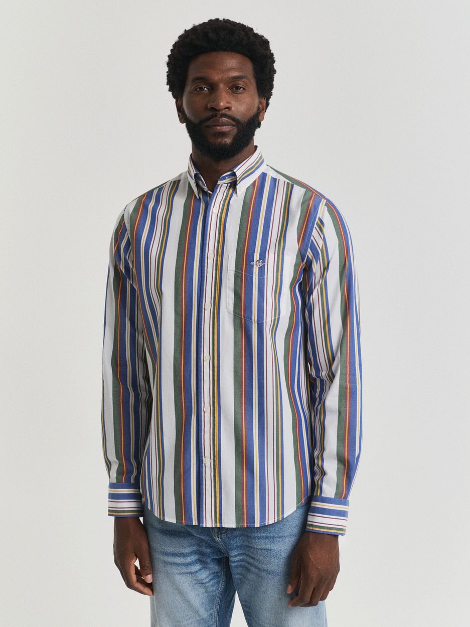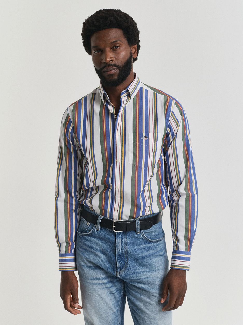 Ontdek de bijzondere klasse van het Gant Casual Overhemd met strepen in multicolour. Dit overhemd, behorend tot de categorie Overhemden, heeft een speelse uitstraling met interessante strepen. Vervaardigd uit 100% katoen, biedt het de voordelen van ademend vermogen en duurzaamheid. Een speciale toevoeging is de button-down boord en de enkele manchet, netjes afgewerkt met knopen. De Regular-fit pasvorm biedt comfort met een ruim fitting, perfect voor een ontspannen look.
