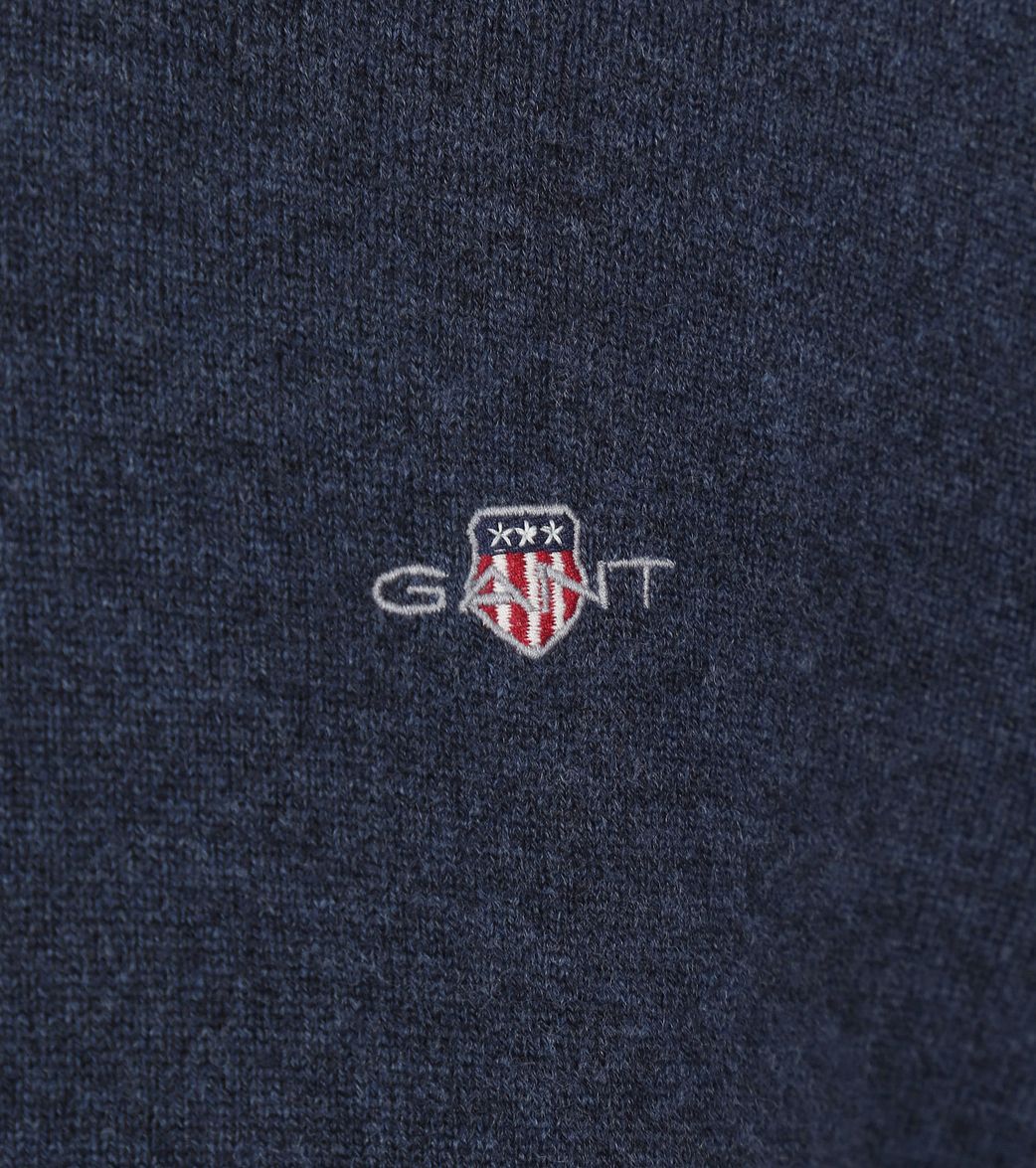 Gant halfzip wol trui logo melange donkerblauw