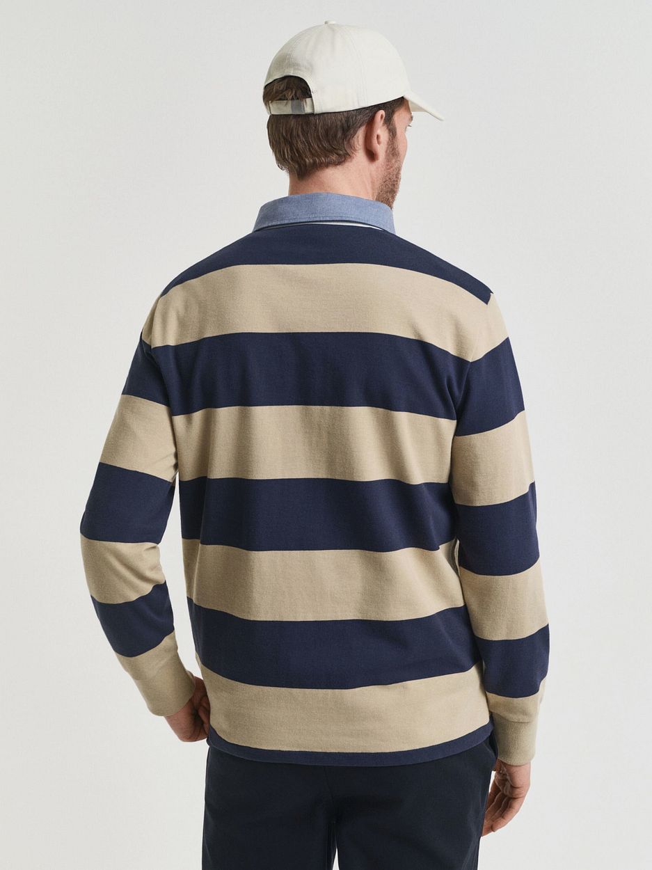 Gant heavy rugger shield longsleeve polo streep donkerblauw beige