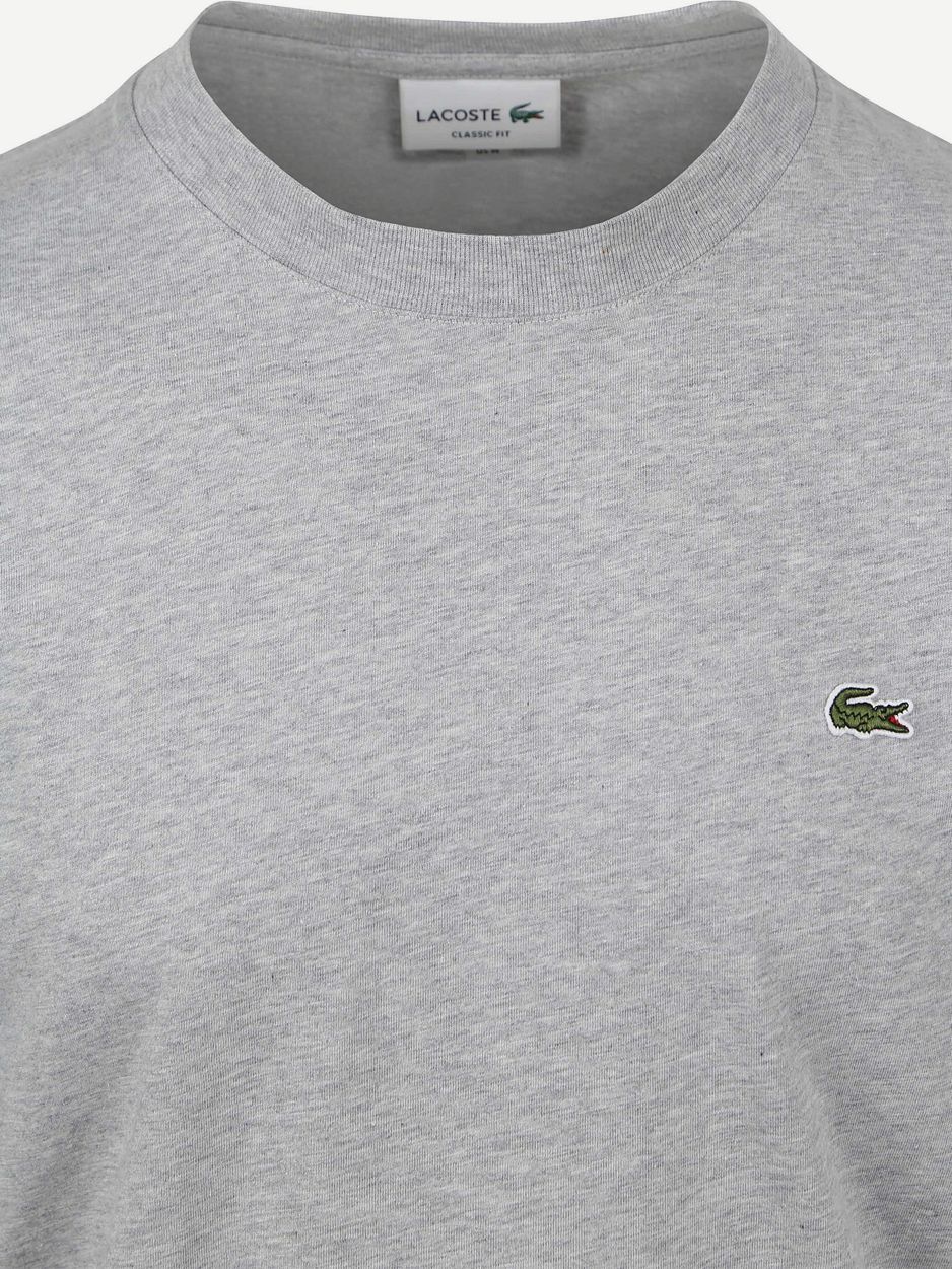 Dit Lacoste T-shirt in grijs biedt u een verzorgde basis met een regular-fit en een ruime fitting. Het 100% katoenen materiaal voelt zacht aan en draagt prettig, ook bij langdurig gebruik. Katoen is goed ademend en helpt u koel te blijven. Katoen neemt vocht op en ondersteunt een droog draaggevoel. Combineer met een Lacoste polo of sweater voor een complete set.
