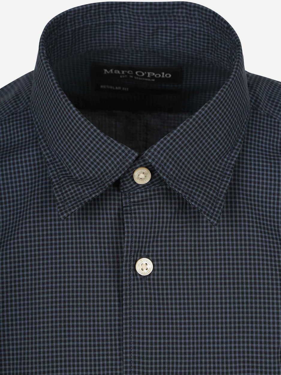 Op zoek naar hoge kwaliteit Heren Overhemden om uw kledingkast mee op te vullen? Met deze Overhemd van Marc O'Polo heeft u altijd een goed Overhemd in huis. De Marc O'Polo Overhemd Ruiten Vichy Donkerblauw is heel geschikt! Marc O'Polo Overhemd Ruiten Vichy Donkerblauw in de kleur Blauw en Donkerblauw met een pasvorm Regular-fit is gemaakt van katoen met Enkel manchet met een Ruit dessin en Lange mouw.