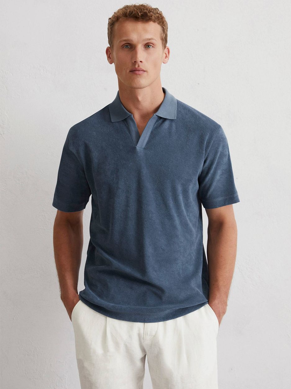 Het Riva Terry Cloth poloshirt in blauw vormt een stijlvolle basis voor verschillende outfits. Combineer met andere items van Marc O'Polo voor een verzorgde uitstraling.