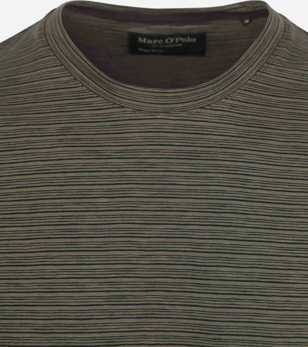 Ervaar het hoogste niveau van comfort en stijl met dit T-shirt van Marc O'Polo. Gemaakt van duurzaam biologisch katoen, het is niet alleen zacht aanvoelend, maar ook ongelooflijk duurzaam. De donkergroene kleur en subtiele streepdessin voegen een vleugje verfijning toe aan je casual kleding. Het ontwerp heeft een regular-fit pasvorm, waardoor het een geweldige keuze is voor elke man die op zoek is naar een goed zittend comfortabel T-shirt.