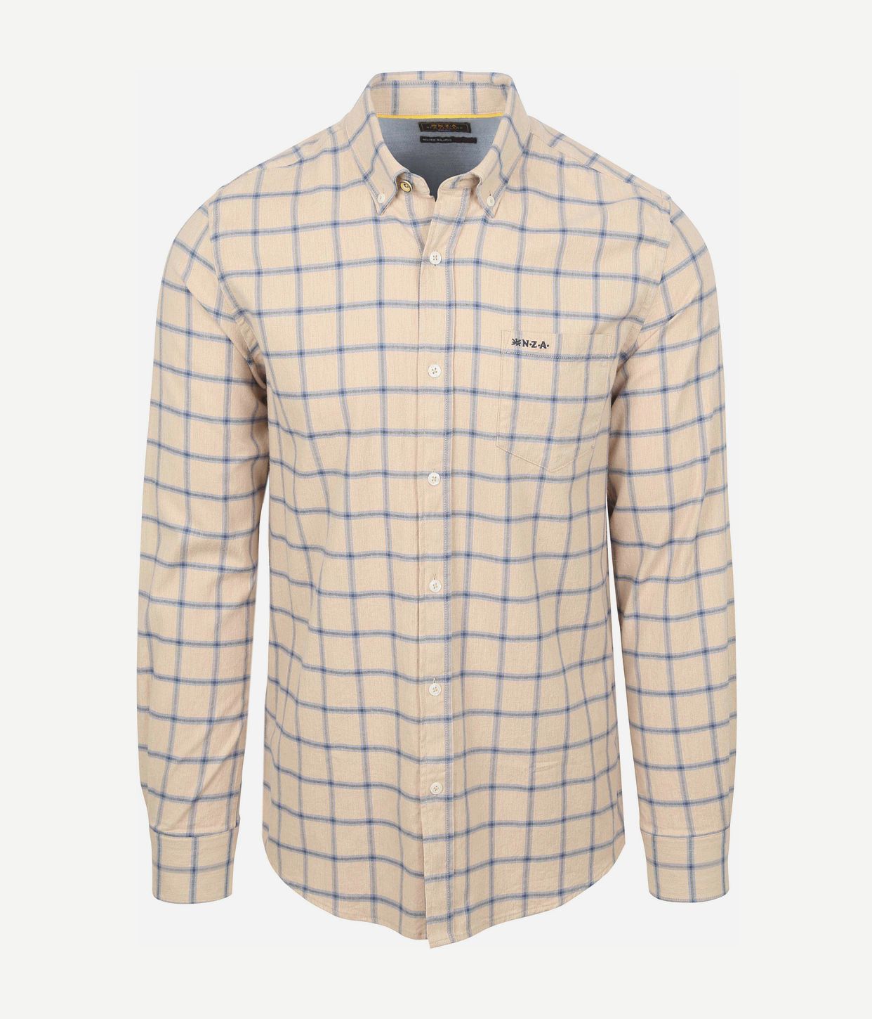 Met het NZA Shirt Armando Flanel Ruit Beige voeg je moeiteloos een vleugje stijl toe aan je garderobe. Kwaliteit en comfort ontmoeten elkaar in dit casual overhemd van New Zealand Auckland. Het ruitpatroon en de knoopsluiting geven het een klassieke uitstraling, terwijl het flanellen materiaal en de Regular-fit pasvorm zorgen voor ultiem draagcomfort en een moeiteloze elegantie.
