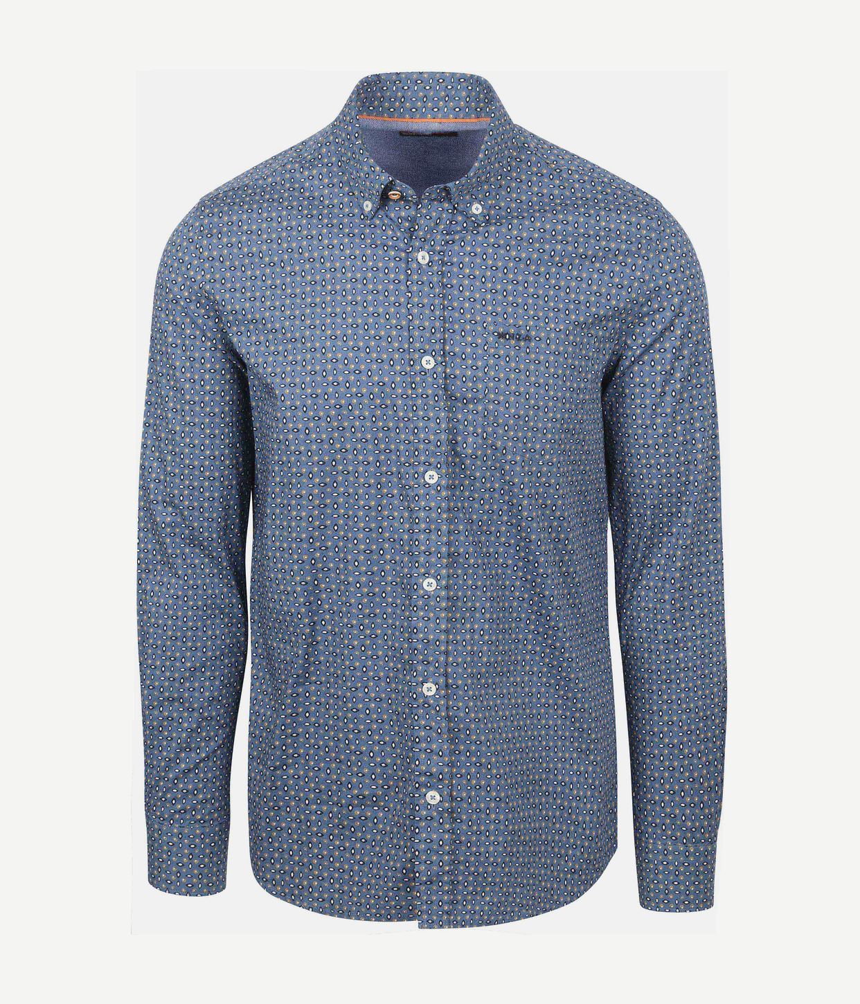 New Zealand Auckland Shirt Kylan Poplin Print Blauw