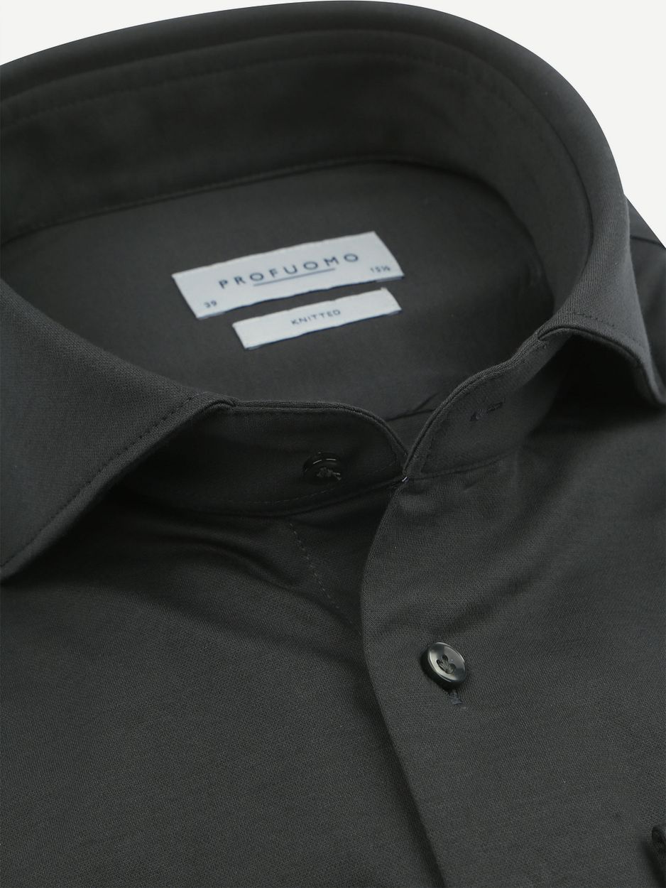 Ontdek de tijdloze elegantie van dit donkergroene knitted overhemd van Profuomo. Gemaakt van 100% katoen, biedt dit overhemd superieur comfort en uitstekende kwaliteit. Met een getailleerde slim-fit pasvorm en een cut-away boord geeft dit overhemd een verfijnde uitstraling aan elke gelegenheid. Combineer het met een chino voor een stijlvolle look.