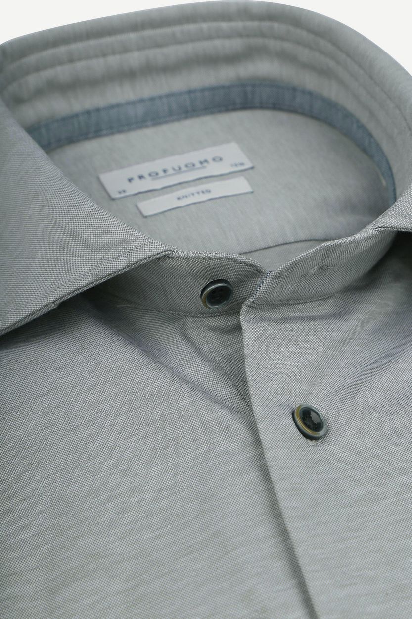 Blijf stijlvol en comfortabel met dit prachtige Profuomo Overhemd Single Jersey in Groen Melange. Het verfijnde en duurzame katoen voelt zacht aan, terwijl de toevoeging van super stretch stof zorgt voor optimale bewegingsvrijheid. Deze combinatie maakt het overhemd ideaal voor dagelijks gebruik. De speciale cut-a-way boord en enkel manchet geven een uniek karakter aan het overhemd. Het slim-fit model accentueert op subtiele wijze uw lichaamsbouw, zonder in te boeten in comfort. Verrijkt uw garderobe met dit veelzijdige overhemd.