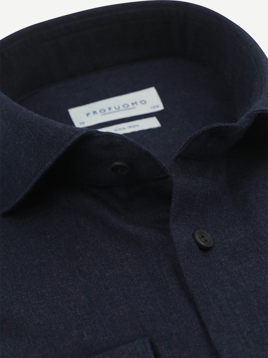 Profuomo overhemd peached twill flanel donkerblauw