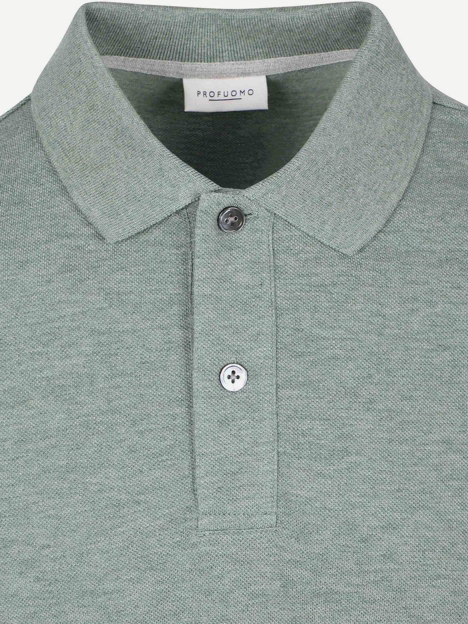 Dit Profuomo poloshirt in piqué melange groen geeft u een verzorgde uitstraling met een moderne, normale fit. Het 100% biologisch katoen voelt prettig aan op de huid en blijft comfortabel, ook op warme dagen. Biologisch katoen is ademend en helpt warmte en vocht goed te reguleren. Biologisch katoen is stevig en behoudt zijn vorm bij regelmatig dragen. Combineer met een chino en een fijngebreide trui van Profuomo voor een complete set.