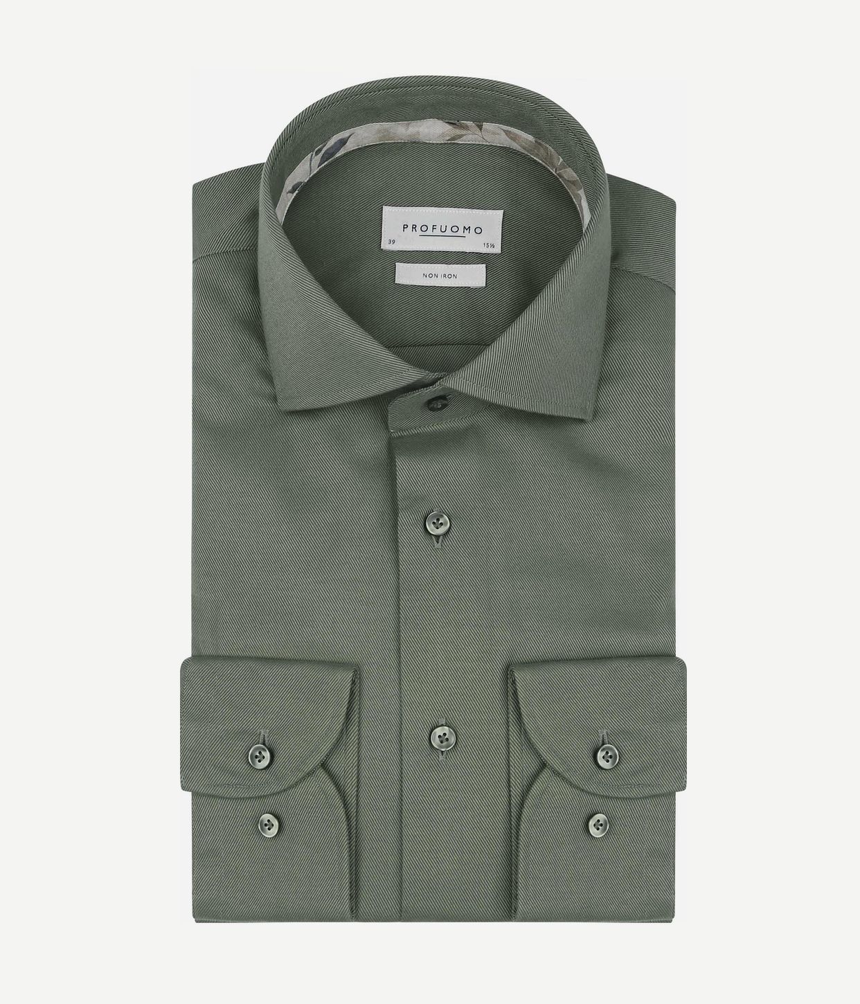 Op zoek naar hoge kwaliteit Heren Overhemden om uw kledingkast mee op te vullen? Met deze Overhemd van Profuomo heeft u altijd een goed Overhemd in huis. De Profuomo Twill Overhemd Olijfgroen is heel geschikt! Profuomo Twill Overhemd Olijfgroen in de kleur Donkergroen en Groen met een pasvorm Slim-fit is gemaakt van katoen en Strijkvrij katoen met een effen dessin en Lange mouw.