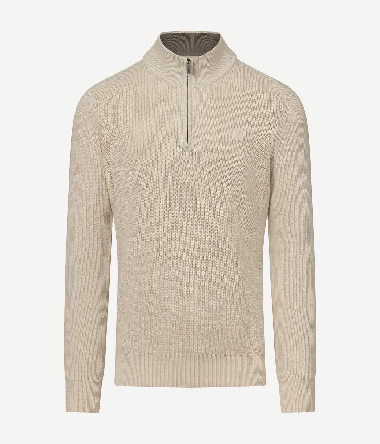 Voor een tijdloze en verfijnde uitstraling is deze State of Art Half Zip Trui in Ecru een must-have in elke garderobe.