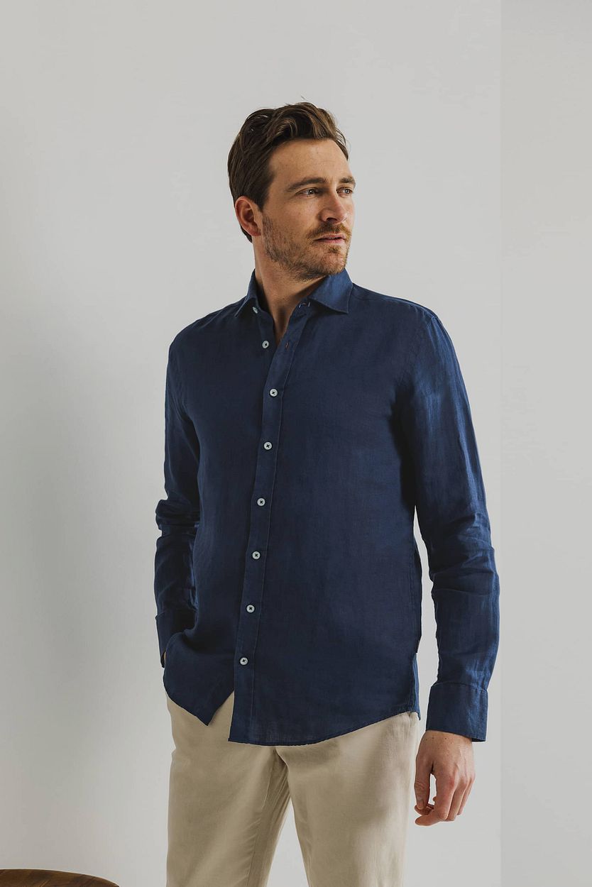 Maak uw zomerse garderobe compleet met dit Navy overhemd van State of Art. Het overhemd is gemaakt van linnen, een materiaal dat bekend staat om zijn verkoelende effect. Het zorgt ervoor dat u zich comfortabel en fris blijft voelen, zelfs op de warmste zomerdagen. Bovendien heeft linnen een uitstekende vochtopname, waardoor u altijd droog blijft. De ruime regular-fit pasvorm biedt veel bewegingsvrijheid, terwijl de widespread boord een nonchalante uitstraling geeft. De donkerblauwe kleur is stijlvol en tijdloos, dus u kunt dit overhemd keer op keer dragen.