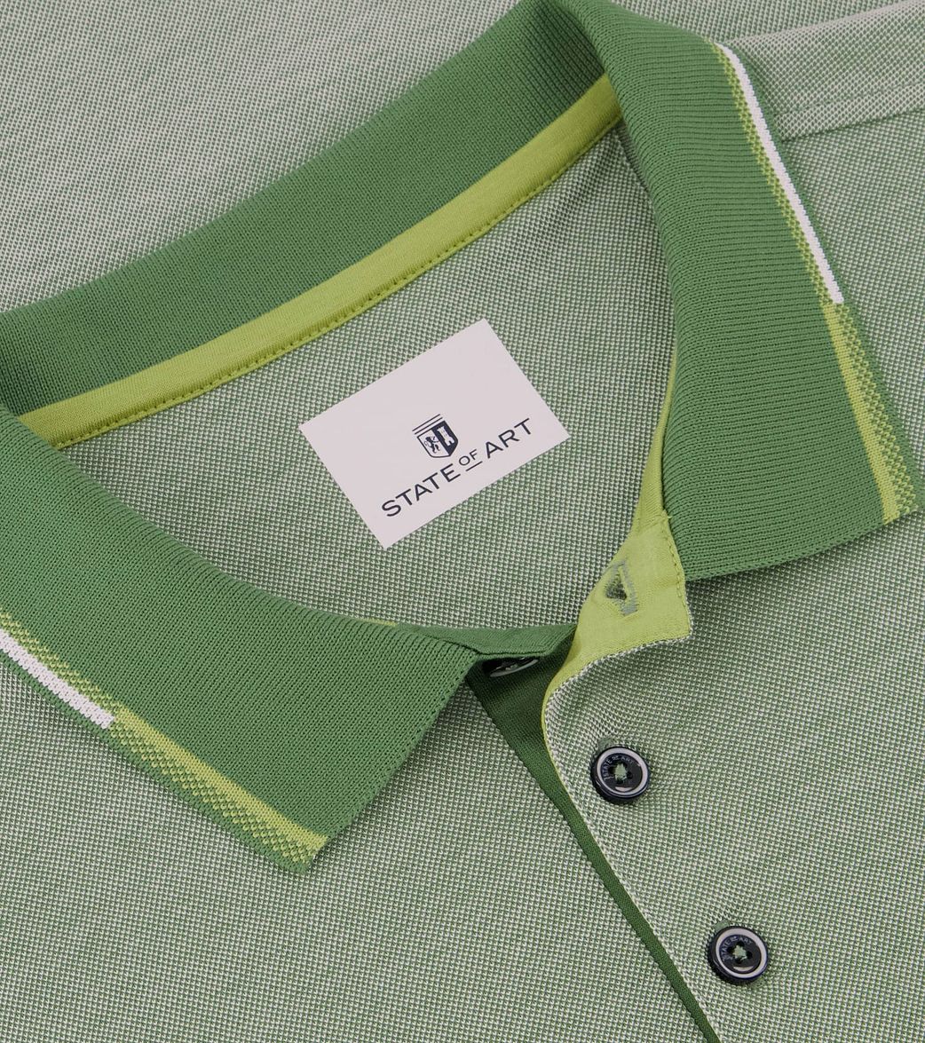 Verfijnd en als altijd charmant, ontdek dit groene Pique Polo van State Of Art. Een waardevolle toevoeging aan uw zomerse garderobe met een comfortabele pasvorm dankzij het verfijnde katoen. Dit materiaal staat bekend om zijn ademend vermogen en zorgt voor een fraaie, duurzame uitstraling.