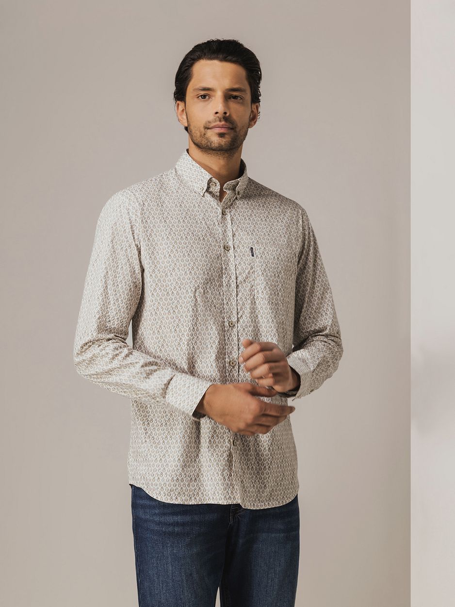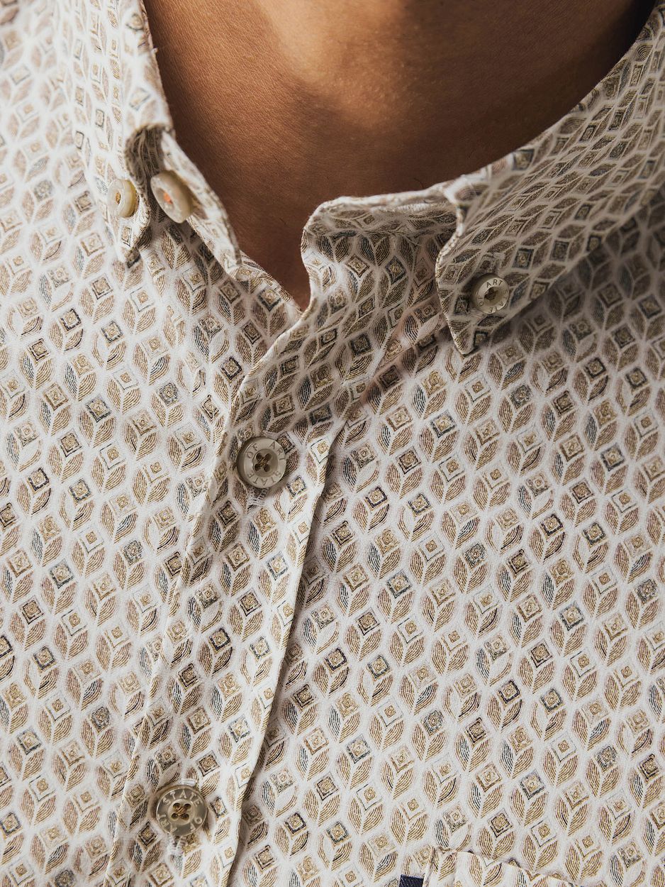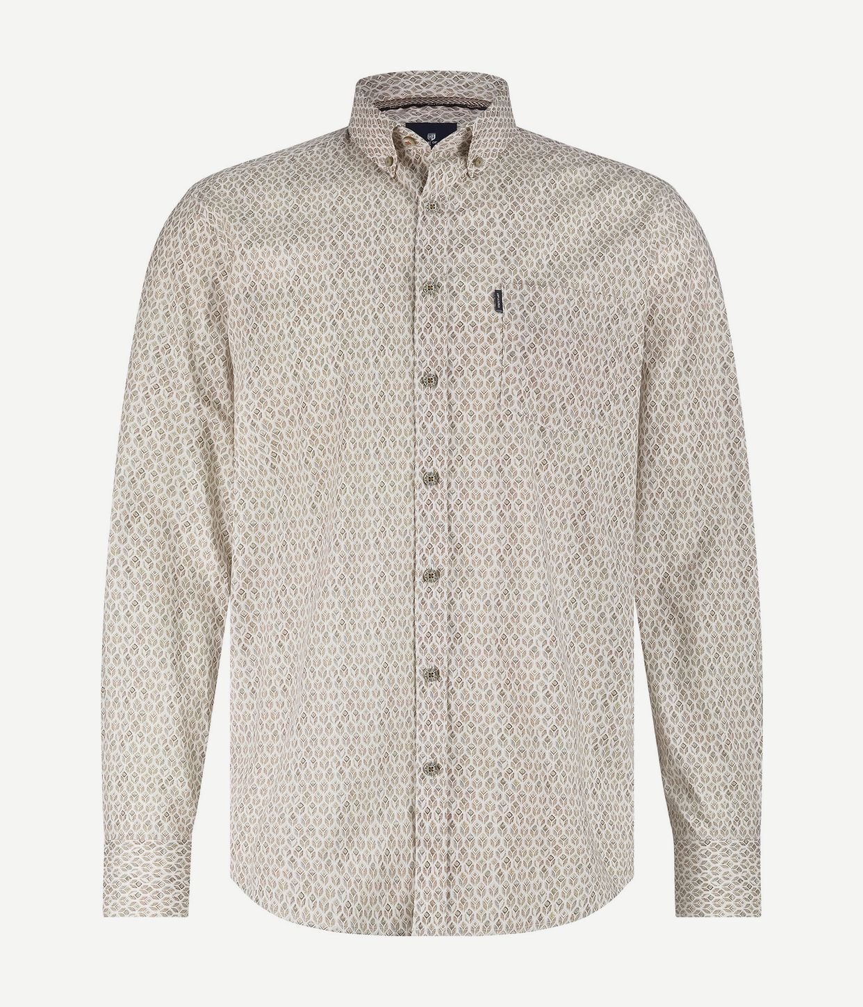 Dit stijlvolle State of Art overhemd is de perfecte aanvulling op uw garderobe. Vervaardigd van zachte katoenen poplin met een uniek printdessin. De button-down kraag en enkel manchet zorgen voor een tijdloze uitstraling. De regular-fit pasvorm biedt comfort en een moeiteloze stijl die geschikt is voor elke gelegenheid. Combineer dit overhemd met een chino van State of Art voor een complete look.