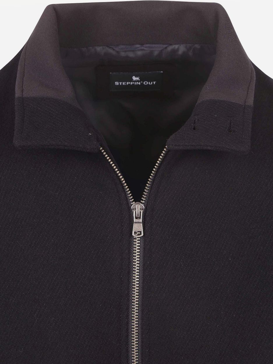 Steppin' Out Jack Wool Blend Navy is de perfecte toevoeging aan je garderobe. Met zijn blend van polyester en wol biedt deze bomberjas jou comfort en warmte, ideaal voor elke gelegenheid. De opstaande kraag en knoopsluiting geven een klassieke uitstraling. De regular-fit en ruime fitting zorgen voor een moeiteloze stijlvolle look. Verkrijgbaar in donkerblauw, perfect voor een smart en college outfit.