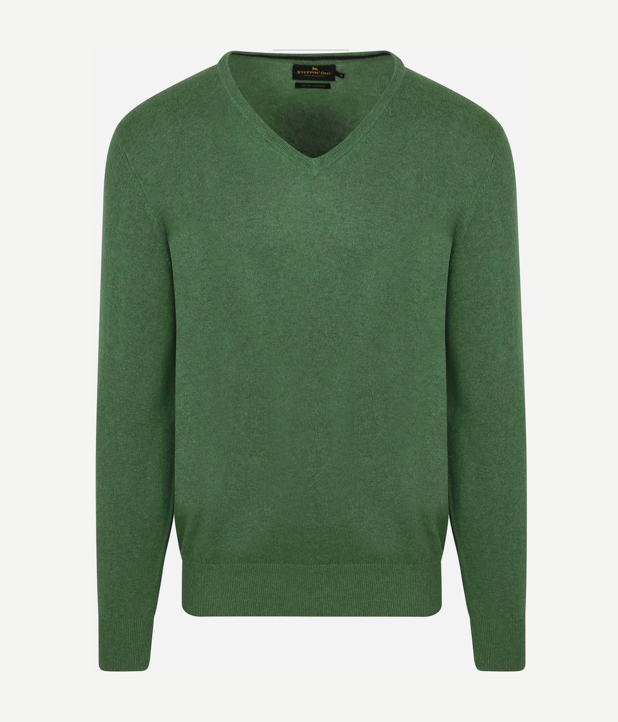Uiteenzetting: De Steppin' Out Trui Cotton Cashmere met V-hals in prachtig groen is een rijke toevoeging aan uw kledingkast. Gemaakt van verfijnde katoenkasjmier mix, biedt het een warmte die zo licht is dat u nauwelijks merkt dat u het draagt. De regular-fit pasvorm zorgt voor een ontspannen silhouet, ideaal voor een nonchalante maar stijlvolle look. Combineer met andere artikelen van Steppin' Out voor een evenwichtige uitstraling. Katoen is ademend en houdt u koel, terwijl kasjmier bekend staat om zijn isolerende eigenschappen, zelfs wanneer het nat is. • Soort: Pullover