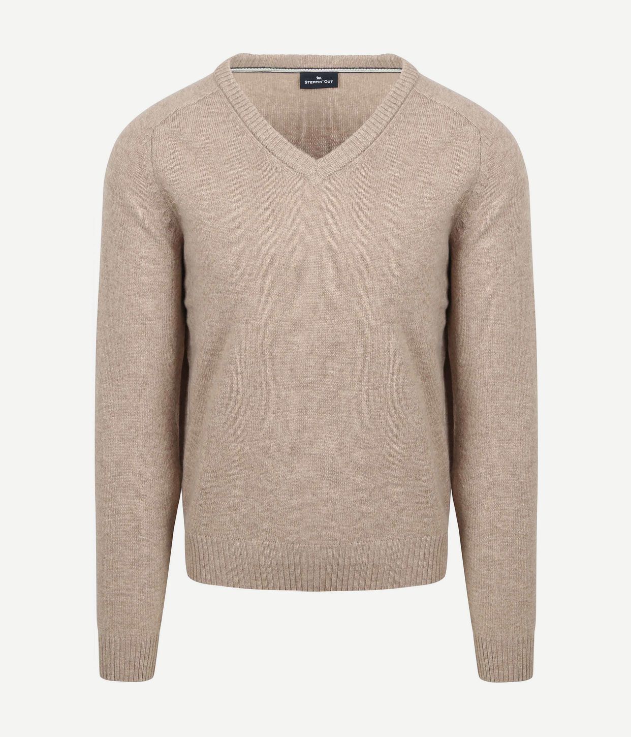 Steppin' Out brengt met trots deze beige trui van lamswol met V-hals voor de moderne man. Geniet van de luxe en warmte van 100% lamswol, perfect voor de koude dagen. De regular-fit pasvorm zorgt voor een comfortabele en stijlvolle look. Combineer deze trui met een chino voor een smart-casual uitstraling. Een tijdloze aanwinst voor je garderobe!