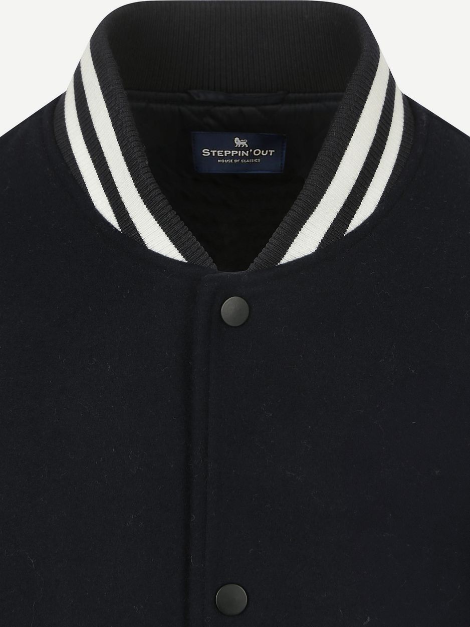 De Steppin' Out Varsity Jack Navy is hét item voor de stijlbewuste man. Gemaakt van hoogwaardig polyester, viscose en stretch voor ultiem draagcomfort. De regular-fit pasvorm zorgt voor een moderne look zonder in te leveren op comfort. Met knoopsluiting en opstaande kraag is deze bomberjas een tijdloze toevoeging aan je garderobe.