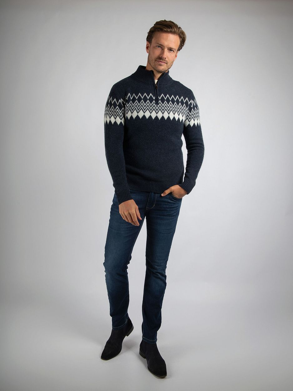 Suitable avery nordic halve rits trui wolblend donkerblauw