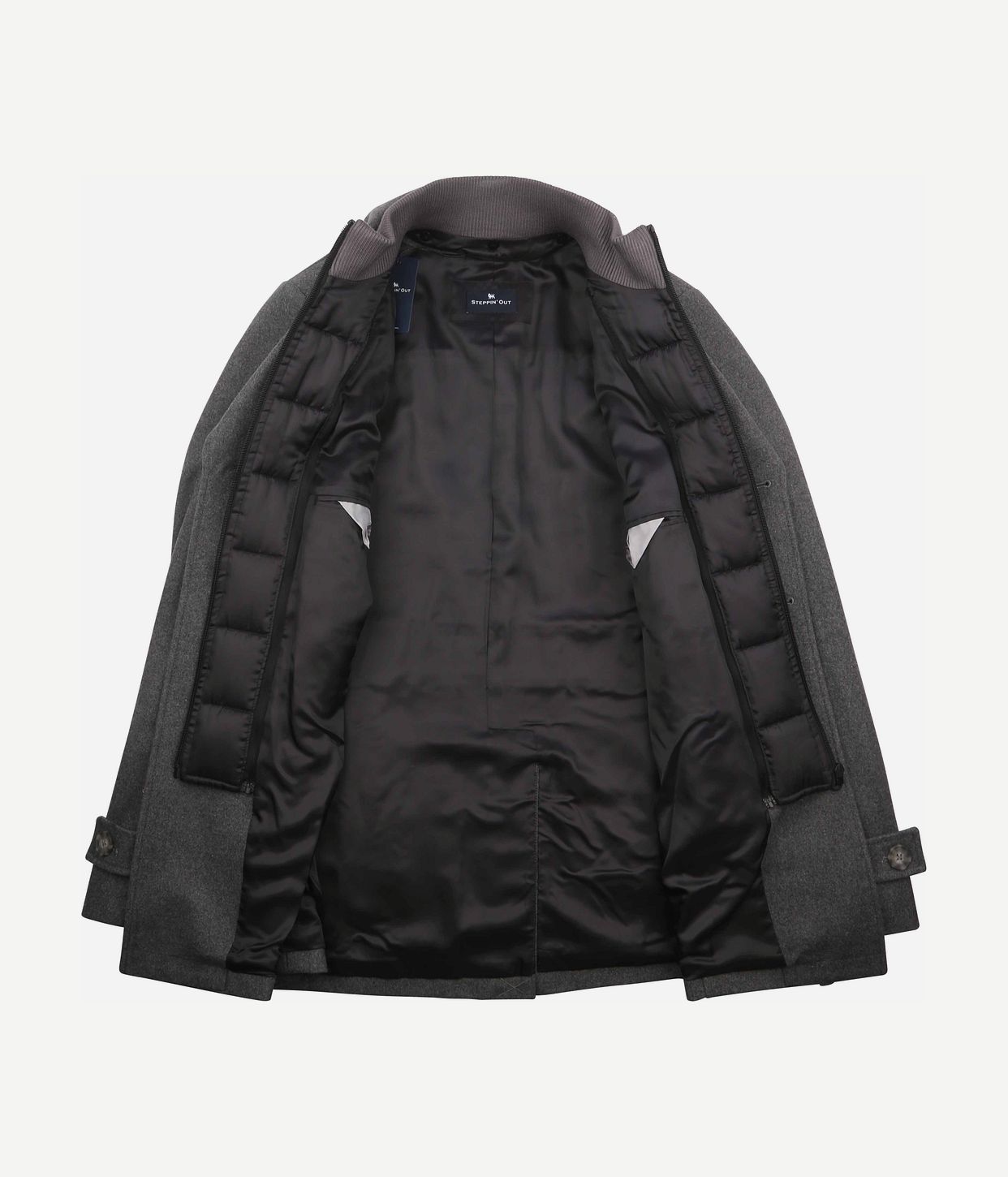 Met de Steppin' Out Caban Coat in grijs zit u altijd goed. De slim-fit pasvorm zorgt voor een verzorgde uitstraling en de hals met opstaande kraag houdt u lekker warm. De jas is vervaardigd van 55% wol en 45% polyester, wat zorgt voor een hoogwaardige kwaliteit en duurzaamheid. De ritssluiting en knopen en de steekzakken maken deze jas compleet.