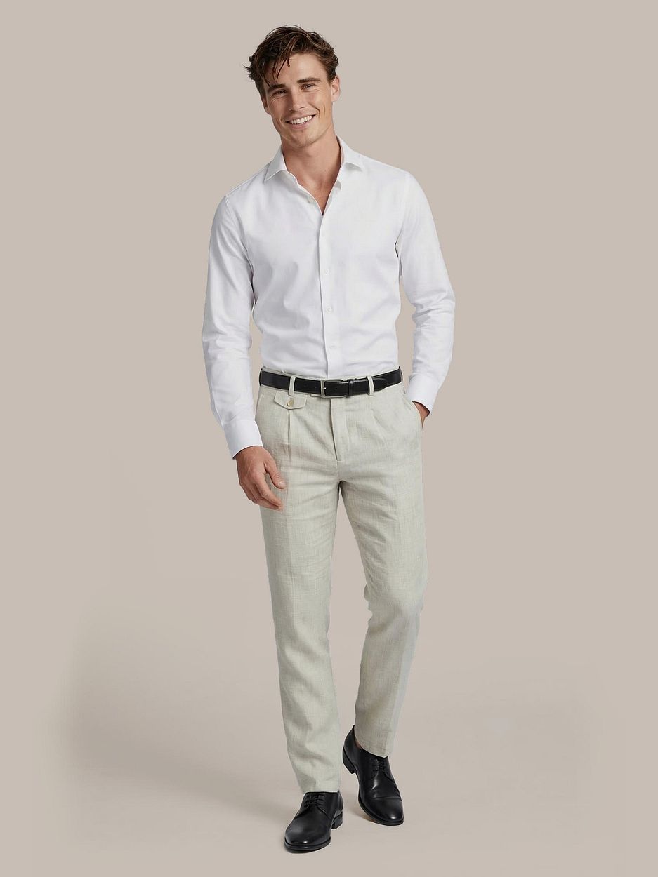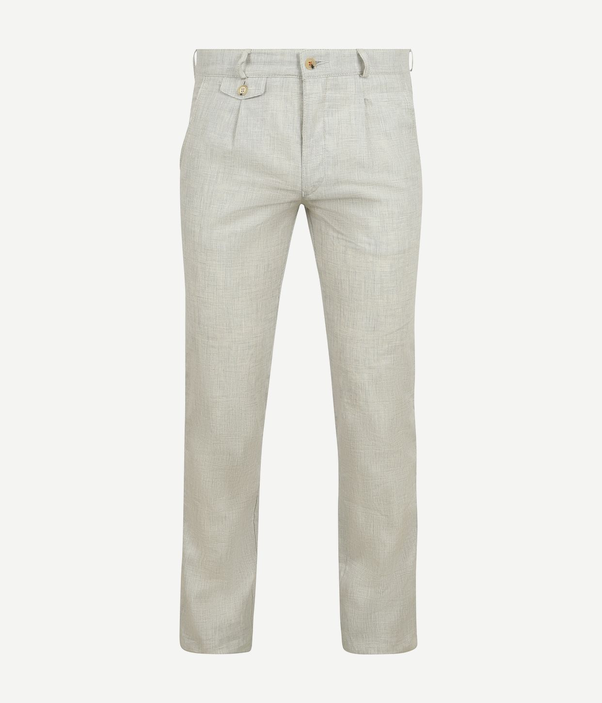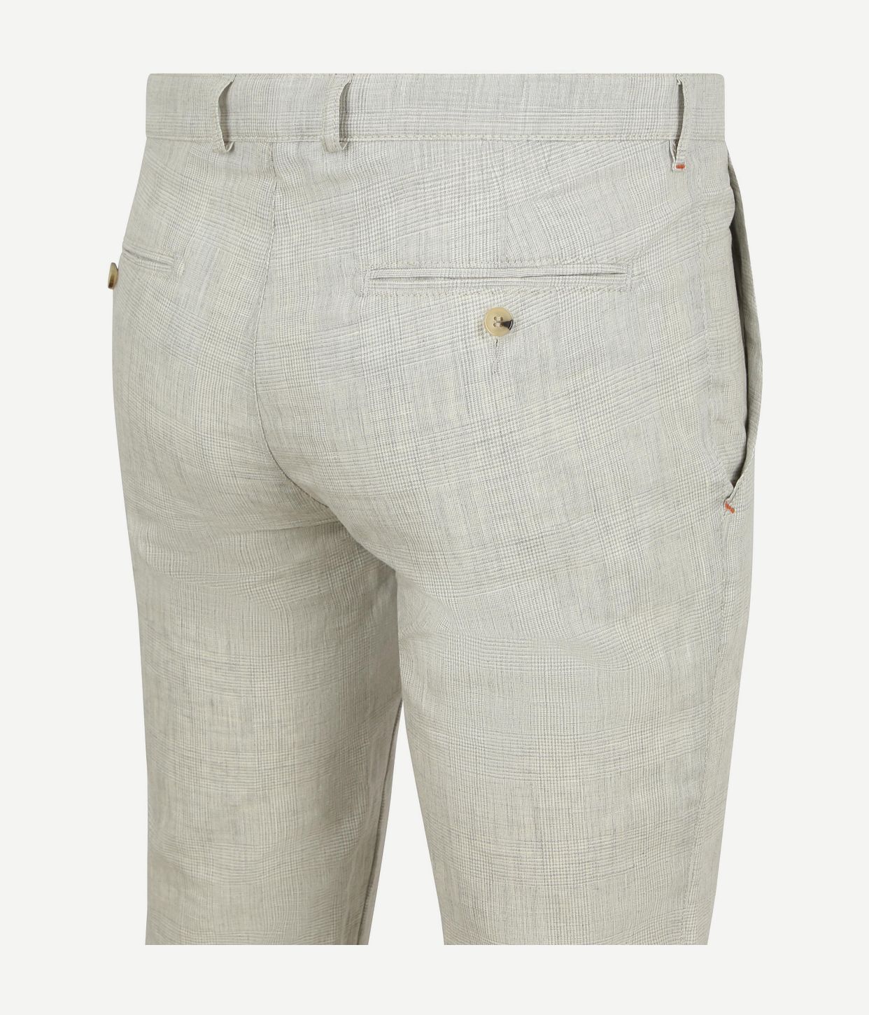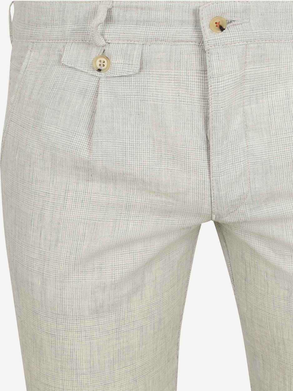 Chino Pico pleat cotton linen glencheck lichtgrijs