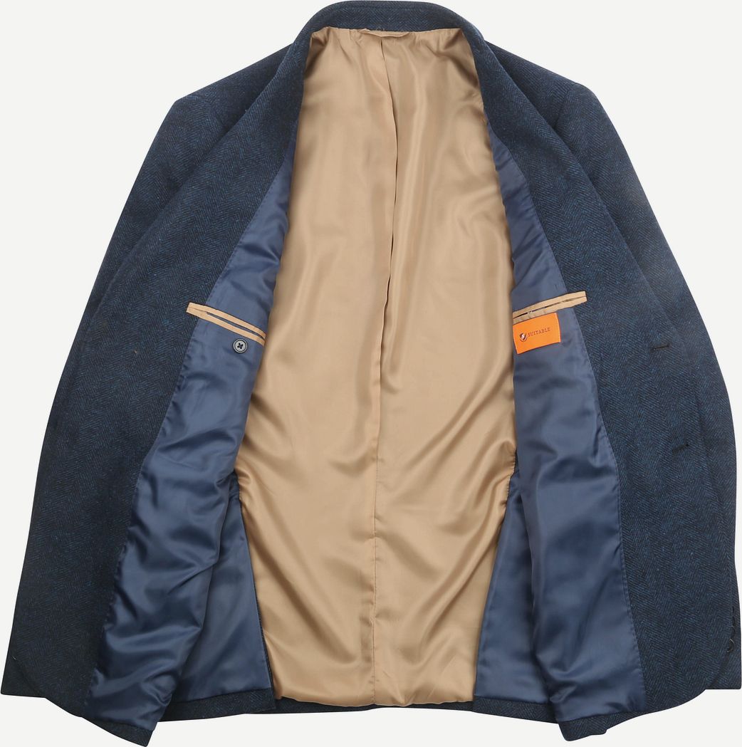 Suitable Merinowol Colbert Herringbone Navy