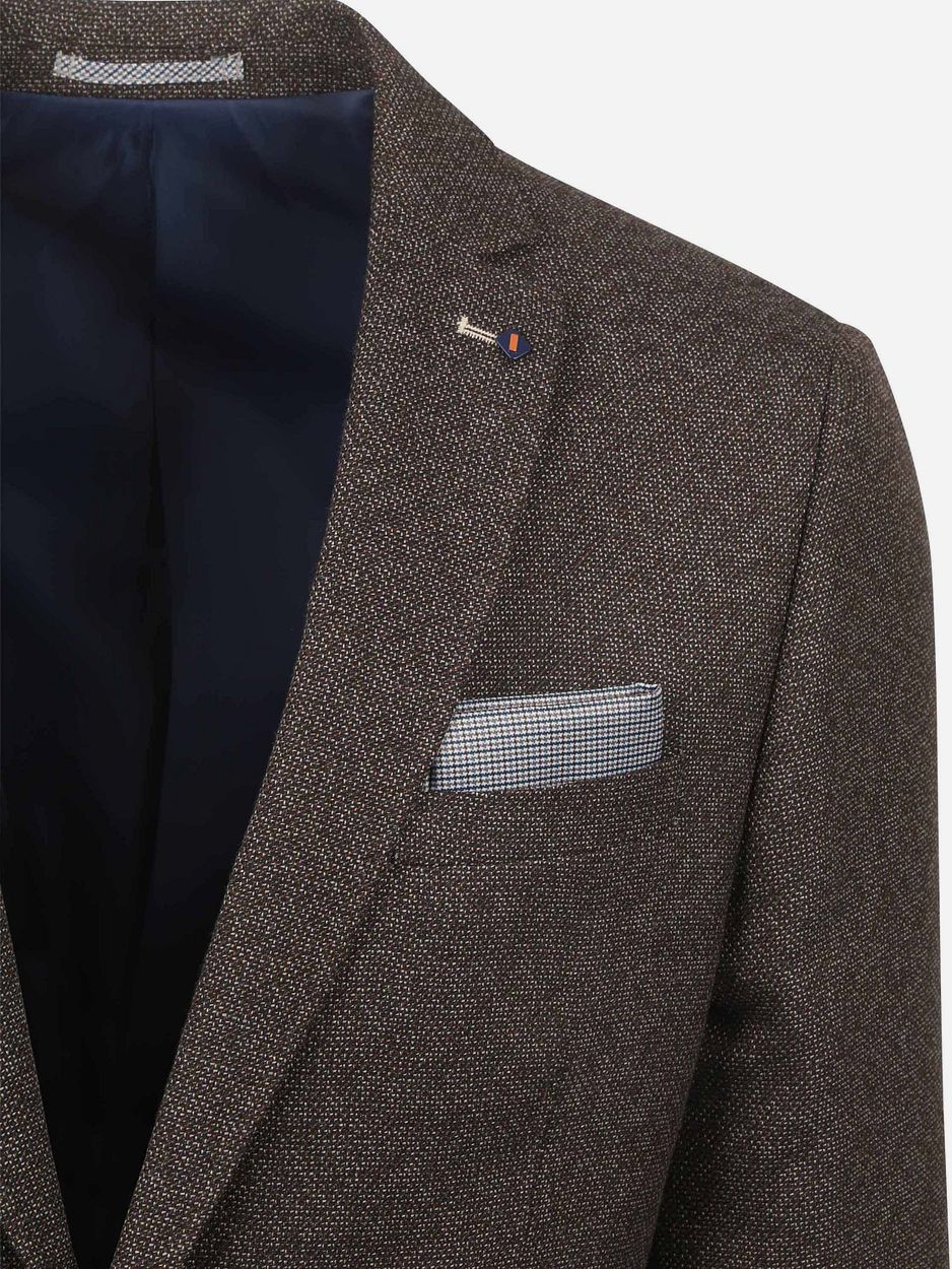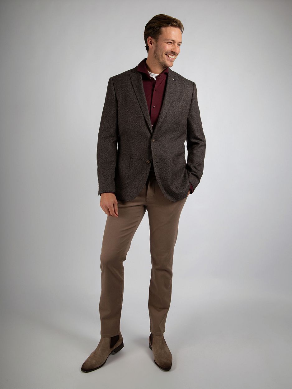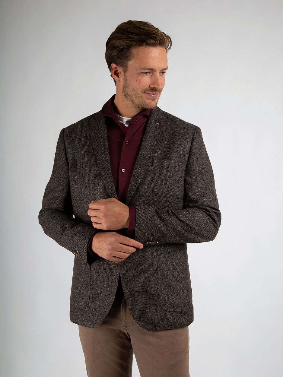Dit Suitable Colbert Leek Structure in het bruin is een tijdloze toevoeging aan uw kledingkast. Gemaakt van hoogwaardig polyester en viscose biedt dit colbert zowel comfort als een klassieke uitstraling. De moderne pasvorm zorgt voor een stijlvolle look die bij elke gelegenheid past. Combineer het met een chino en een overhemd van Suitable voor een complete outfit.