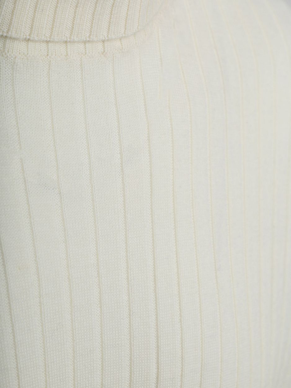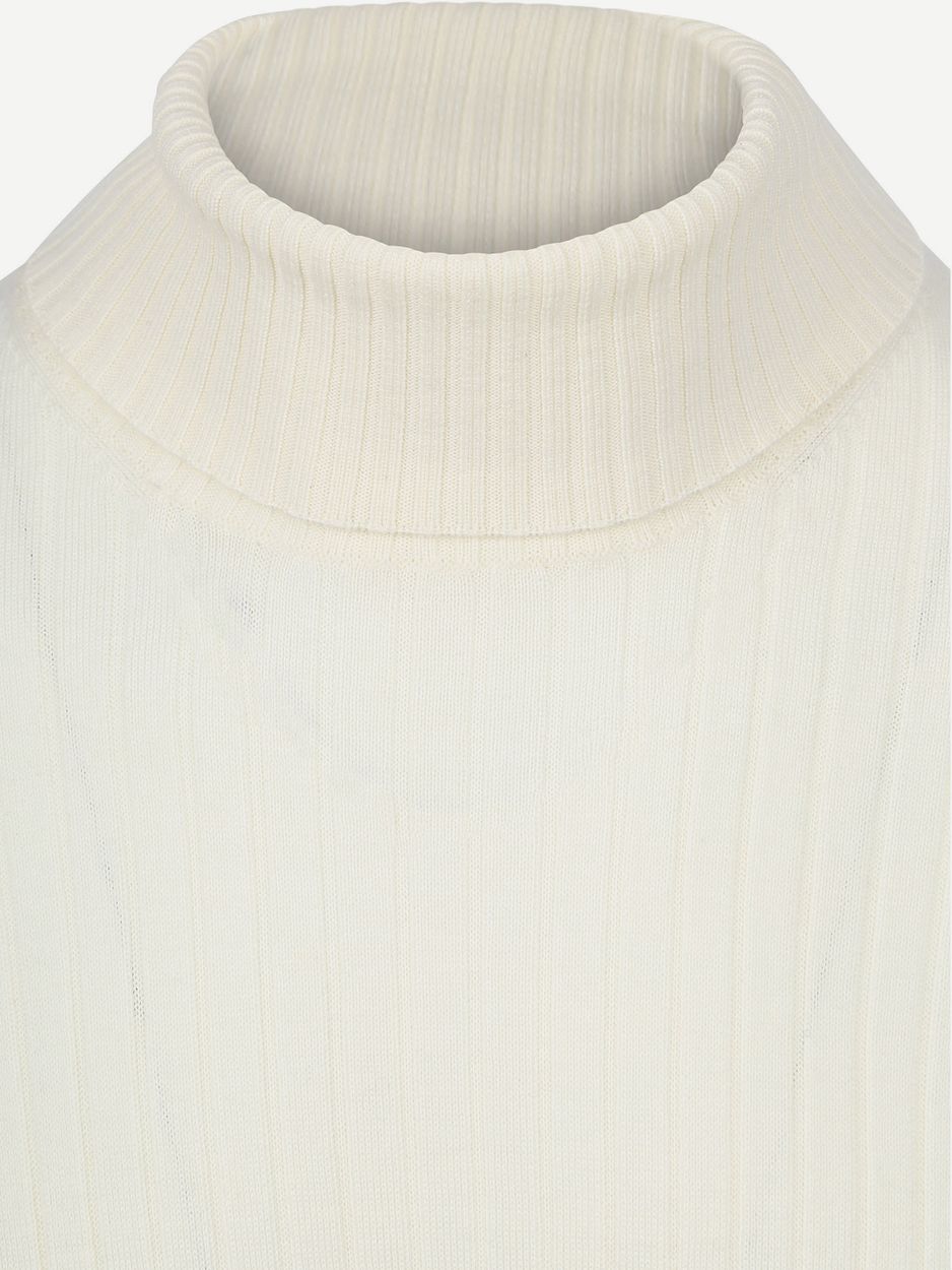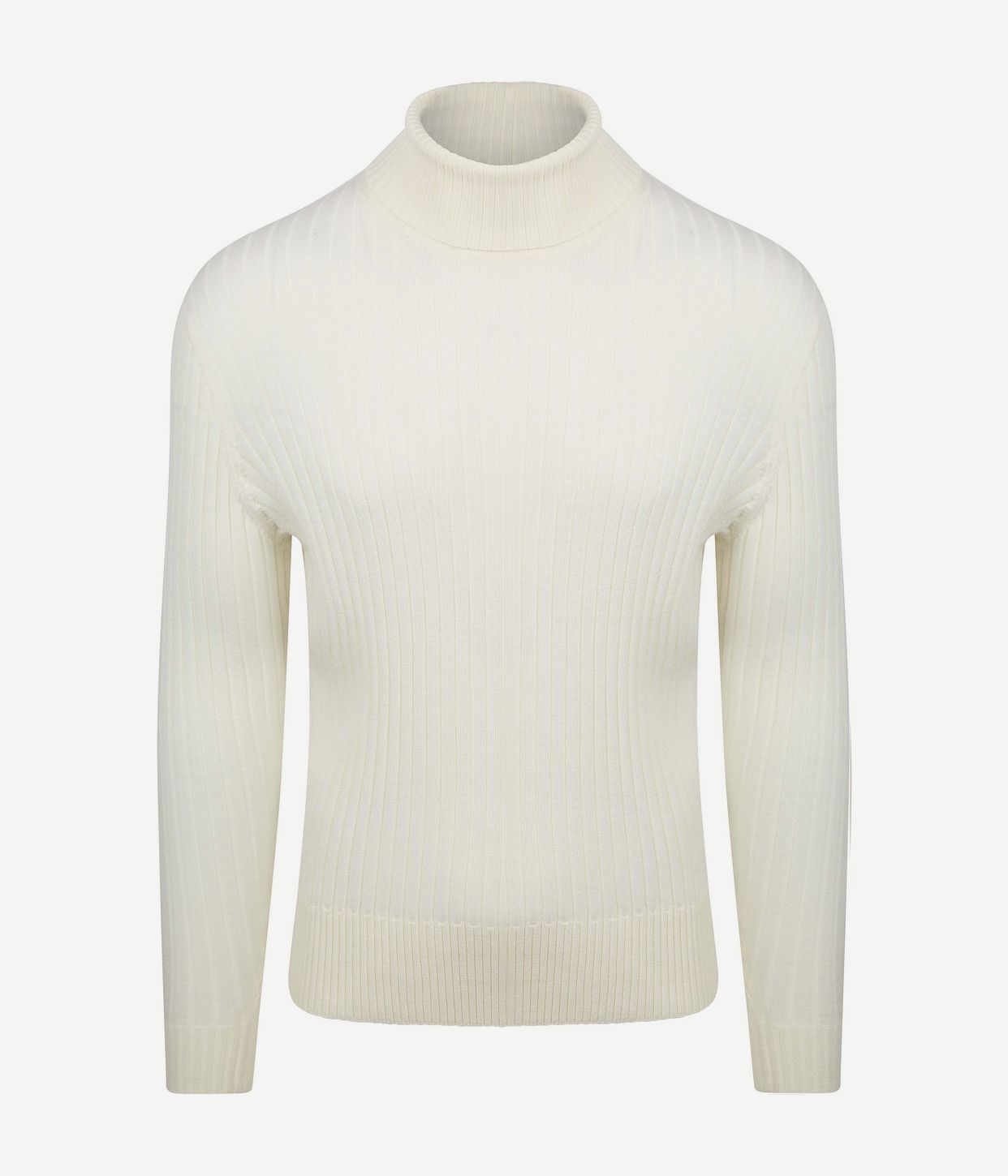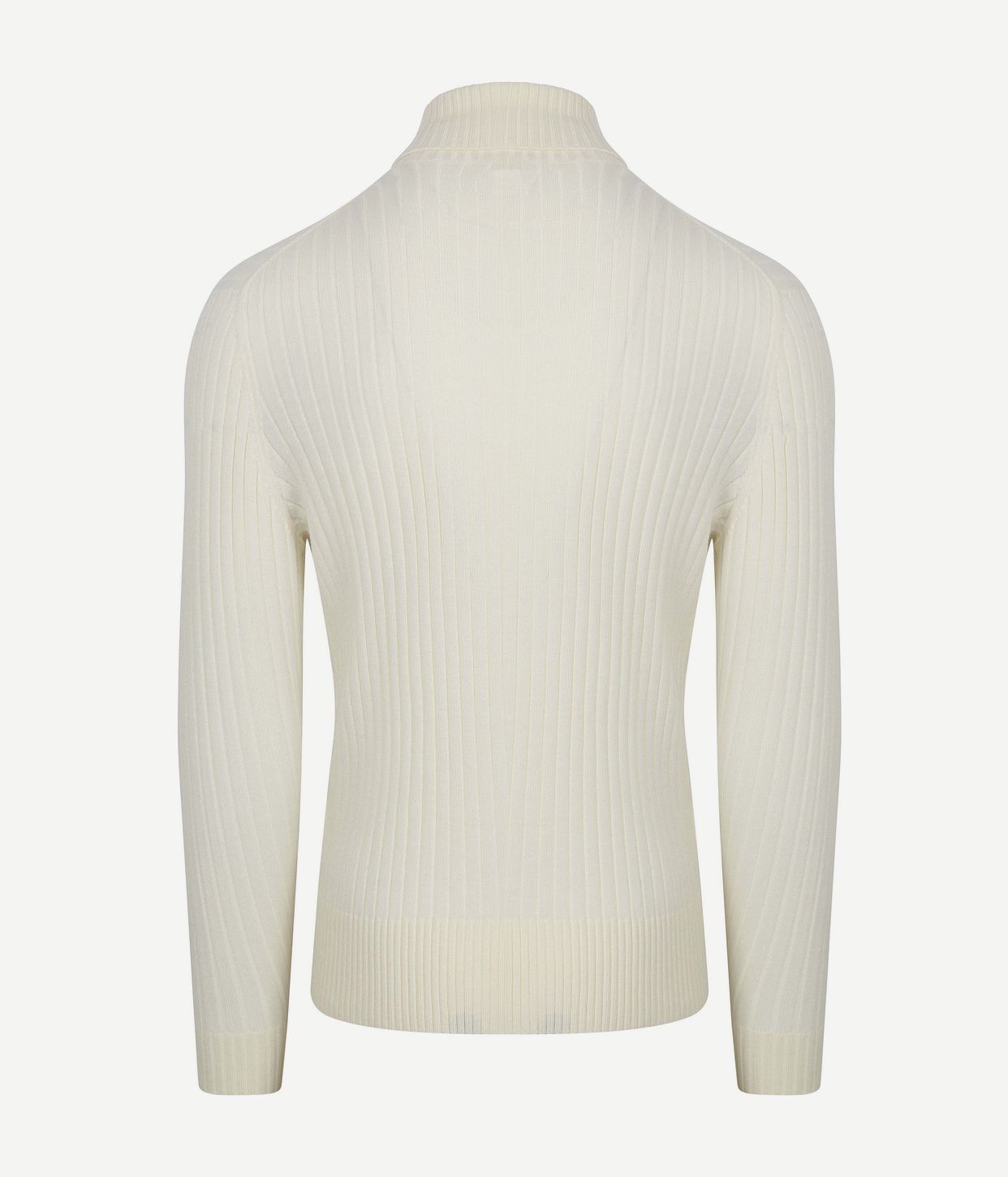 Upgrade uw garderobe met deze stijlvolle Suitable Coltrui Rib Merino in de tijdloze kleur Off-White. Gemaakt van hoogwaardige Merino wol voor ultiem comfort en warmte. De slim-fit pasvorm zorgt voor een moderne look, perfect voor elke gelegenheid. Combineer deze pullover met chino's van Suitable voor een complete en verfijnde outfit.