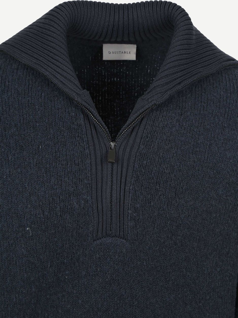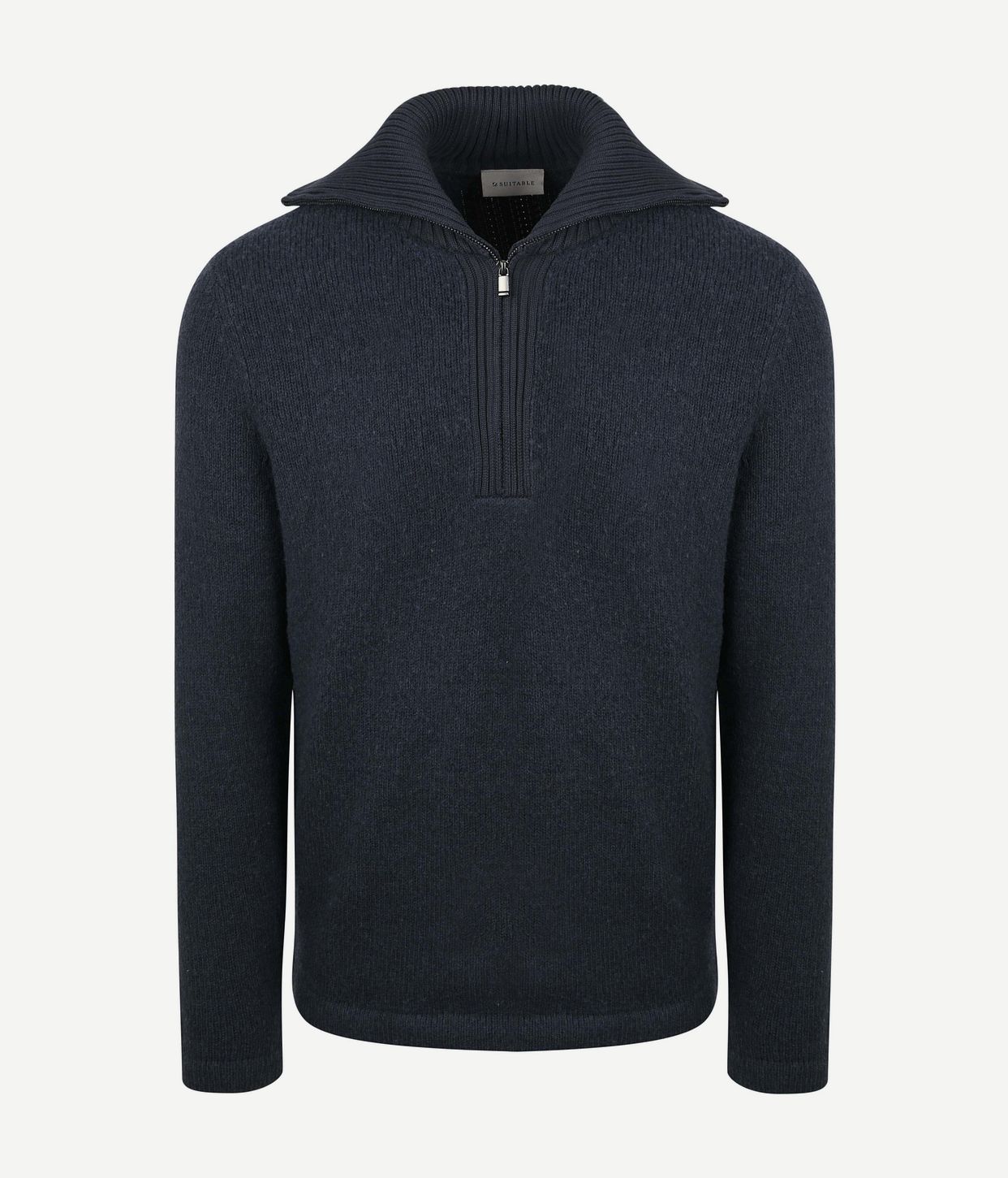 Maak een statement met de Suitable Deep Zip Pullover Boiled Wool in marineblauw. Deze moderne schipperstrui van hoogwaardige materialen biedt zowel comfort als stijl. Het klassieke ontwerp en de perfecte pasvorm maken het een tijdloze toevoeging aan uw garderobe. Vervaardigd van 50% wol voor warmte en 28% katoen voor zachtheid. Combineer het met chino's en een overhemd van Suitable voor een moeiteloos elegante look.