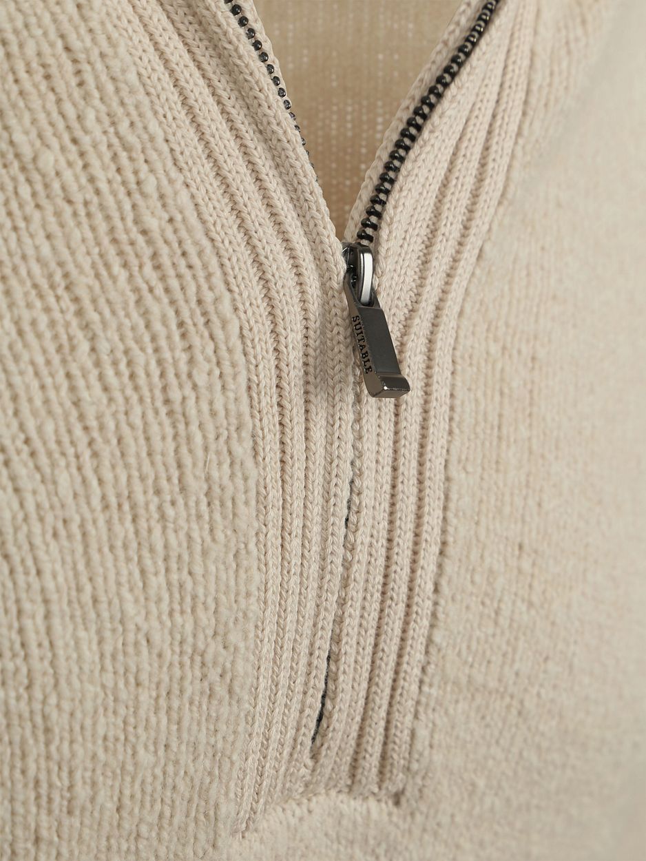 Verwelkom de winter in stijl met deze Suitable Deep Zip Pullover van luxueus gevlochten wol. De warme ecrukleur en moderne pasvorm maken dit een tijdloze toevoeging aan uw garderobe. Ontdek de veelzijdigheid van deze schipperstrui en combineer hem moeiteloos met chino's of jeans voor een verfijnde look.