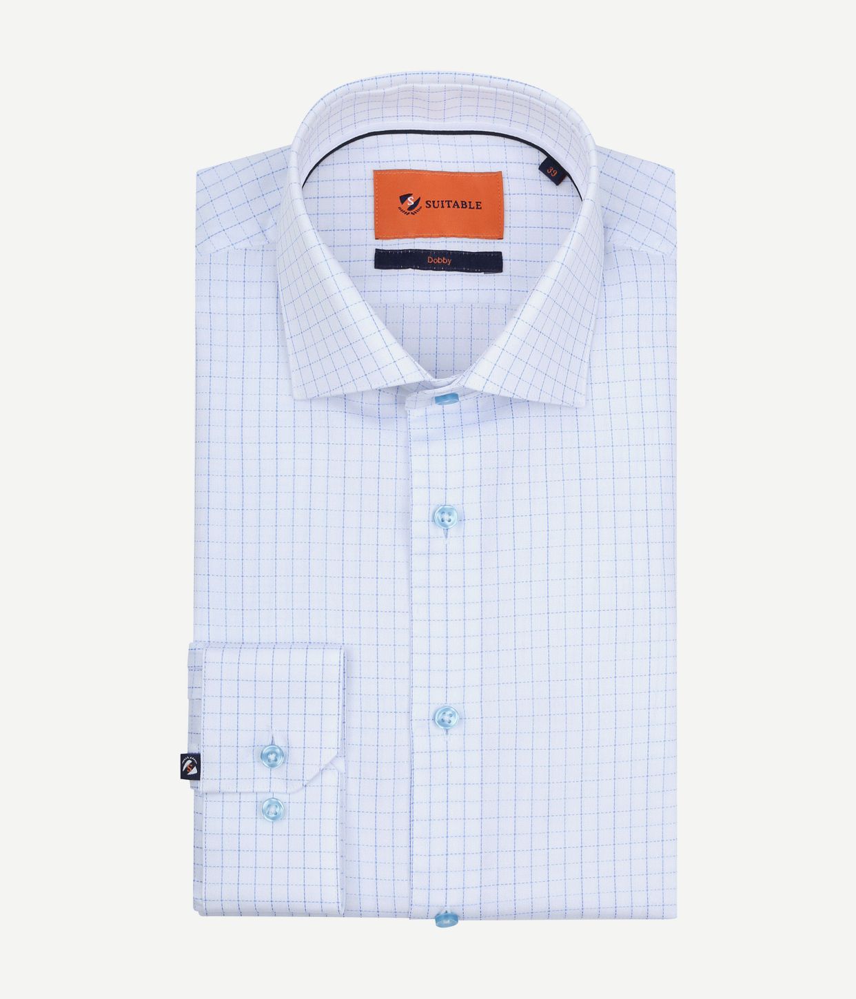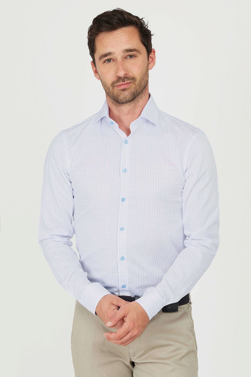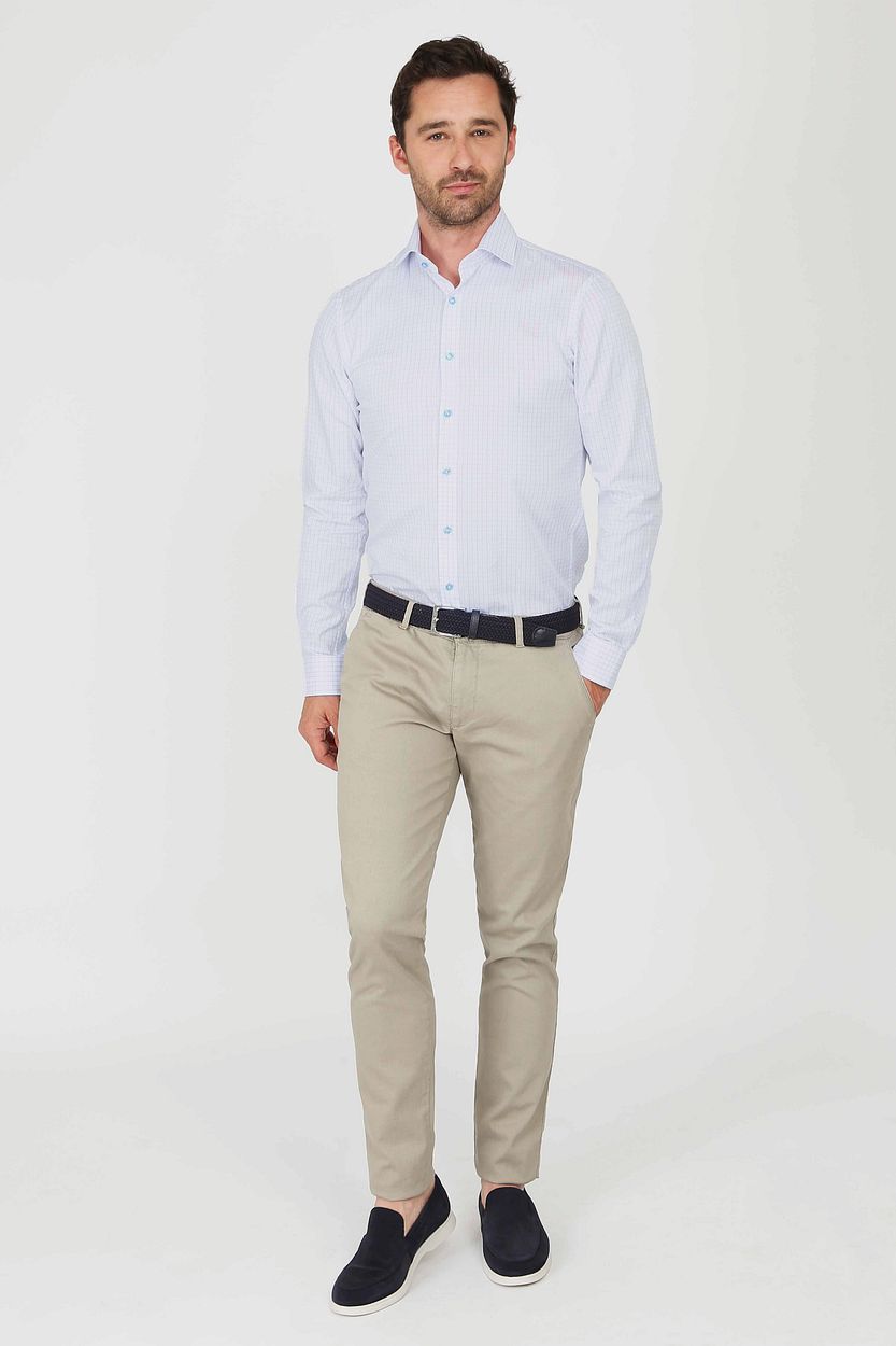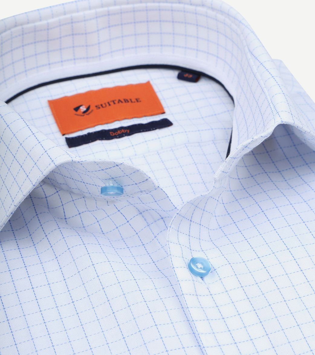 Suitable dobby overhemd ruit lichtblauw