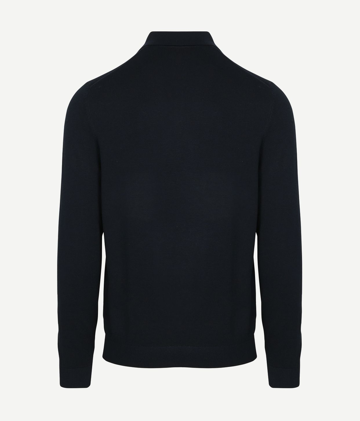 Suitable longsleeve poloshirt flat knit donkerblauw