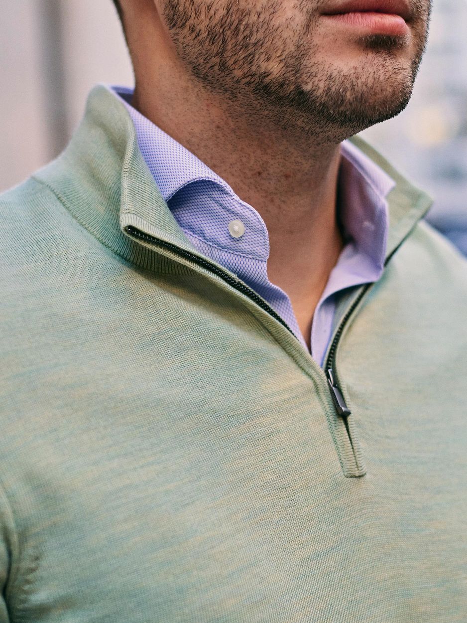 Merino halve rits trui lichtgroen