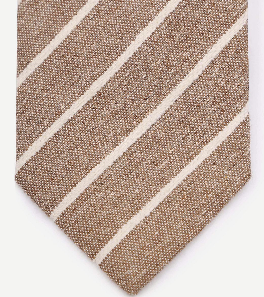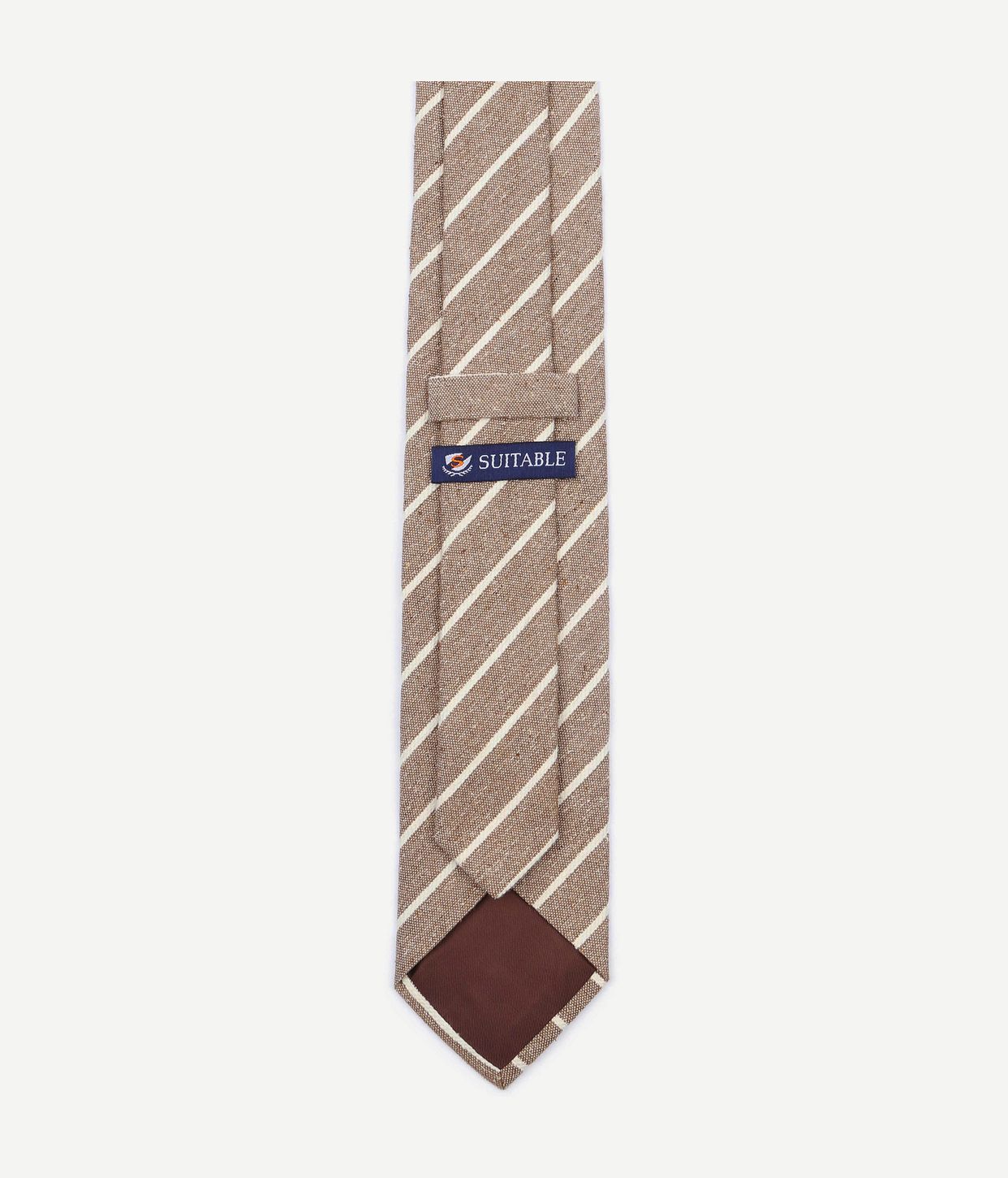 Geeft uw zakelijke garde een elegante en klassieke uitstraling met de Suitable Stropdas Linnen Streep Beige. Deze zorgvuldig vervaardigde stropdas is gemaakt van een verfijnde mix van zijde en linnen, staat garant voor een gedistingeerde uitstraling en zorgt voor een subtiele textuur. De breedte van 7,5 cm maakt deze stropdas, in combinatie met de stijlvolle beigekleurige strepen, de ideale keuze voor de heer die elegantie en functionaliteit op prijs stelt.