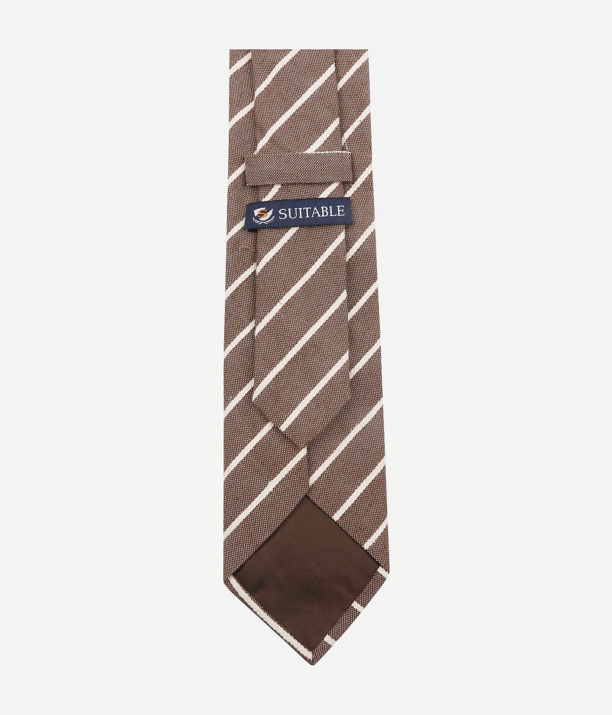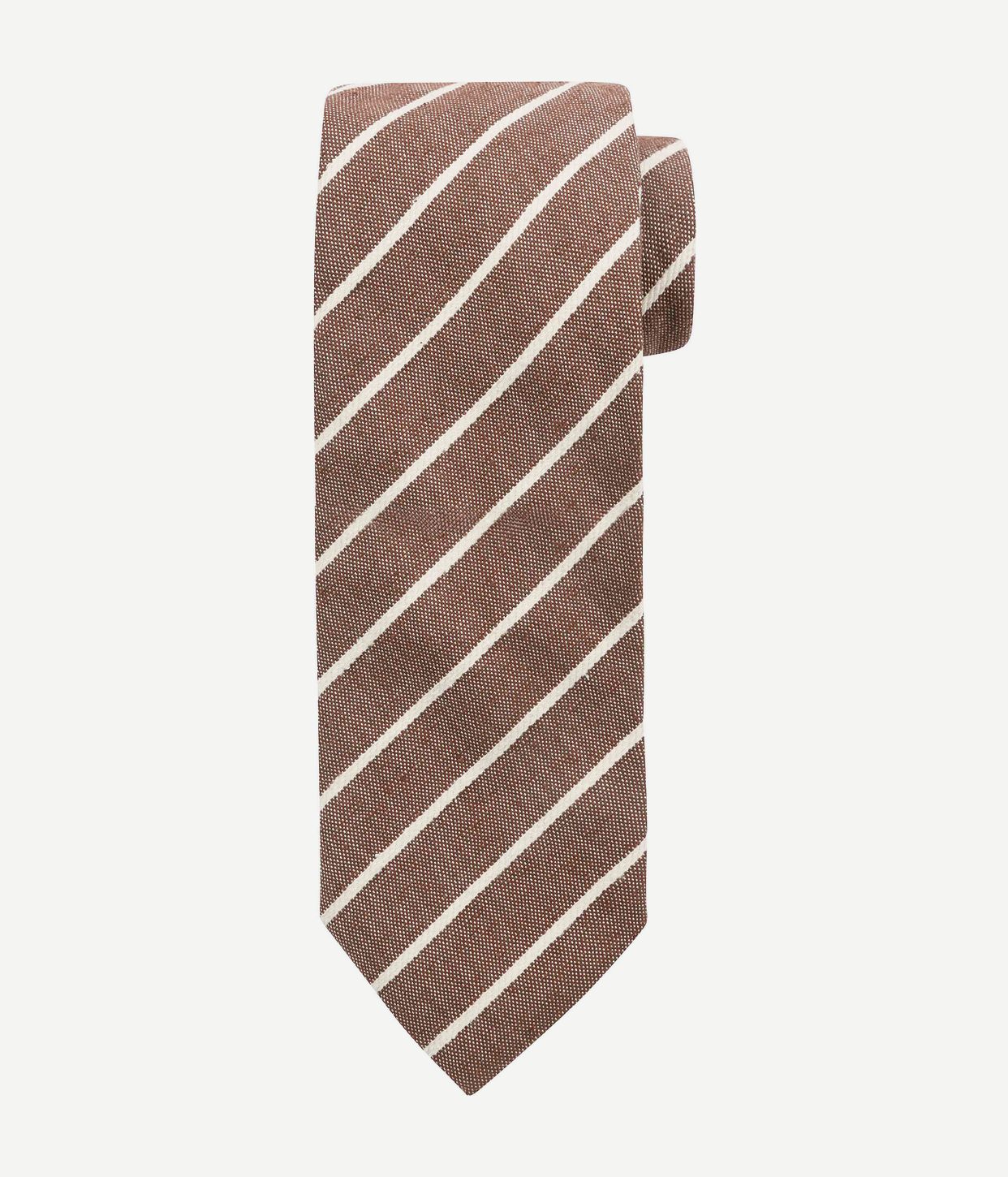 De Suitable Stropdas Linnen Streep Bruin is een stijlvolle optie voor de klassieke heer die houdt van subtiliteit en kwaliteit. Gemaakt van een zijde-linnen mix, verenigt deze stropdas het beste van twee werelden: de glans van zijde gecombineerd met de textuur en frisheid van linnen. De breedte van 7,5 cm is klassiek en past perfect bij ieder colbert van Suitable. De donkerbruine kleur en gestreepte dessin geven de stropdas een ingetogen elegantie.
