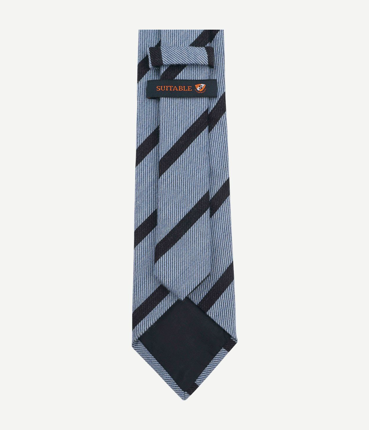 Met zijn breedte van 7cm is deze stropdas klassiek en veelzijdig. U kunt hem prachtig combineren met een blauw of wit overhemd van Suitable voor een coherente, professionele look. De lichte blauwe kleur en het subtiele streepdessin voegen een vleugje finesse toe aan uw ensemble.