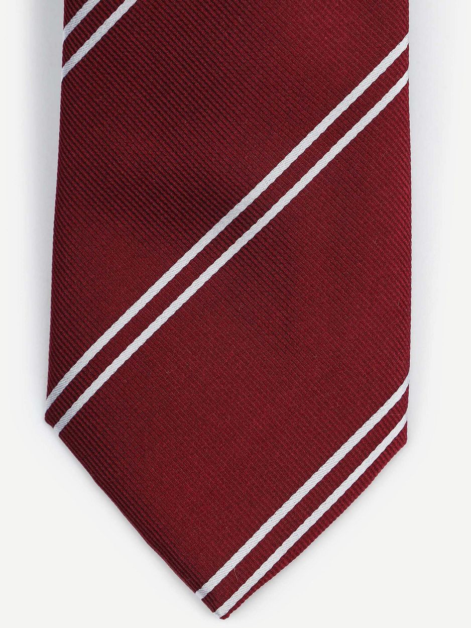 Het merk Suitable heeft deze elegante stropdas van Bordeaux zijde met dubbele streep ontworpen. Deze zijden stropdas met een breedte van 7,5 cm straalt klasse uit en voegt een vleugje luxe toe aan uw formele look. De zijden stof voelt zijdezacht aan en geeft de das een mooie glans, terwijl de dubbele streep bijdraagt aan een tijdloze uitstraling. Combineer deze stropdas met een bijpassend shirt en een nette blazer voor een stijlvolle, professionele uitstraling.