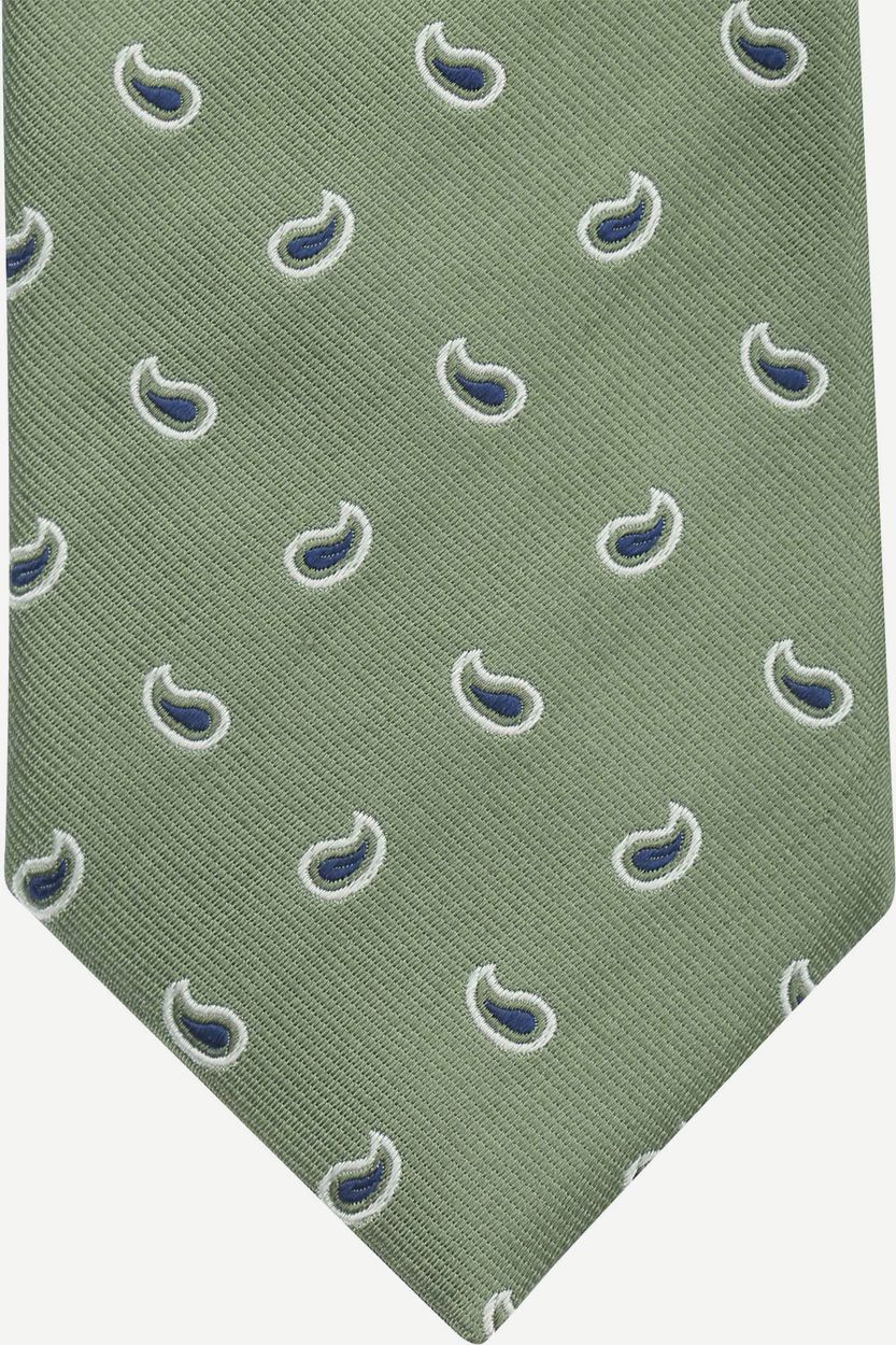 Breng een verfijnde touch aan uw garderobe met de Suitable Stropdas Zijde Paisley Groen. Deze elegante stropdas, zorgvuldig vervaardigd uit hoogwaardige zijde, staat garant voor een luxueze uitstraling en duurzaam gebruik. Met een breedte van 7,5 cm valt de stropdas mooi in balans met de rest van uw outfit. Draagt u hem in combinatie met een wit overhemd en donkergroen maatpak voor een harmonieus ensemble. Het unieke paisley patroon voegt een subtiele flair van individualiteit toe zonder afbreuk te doen aan de klassieke stijl.