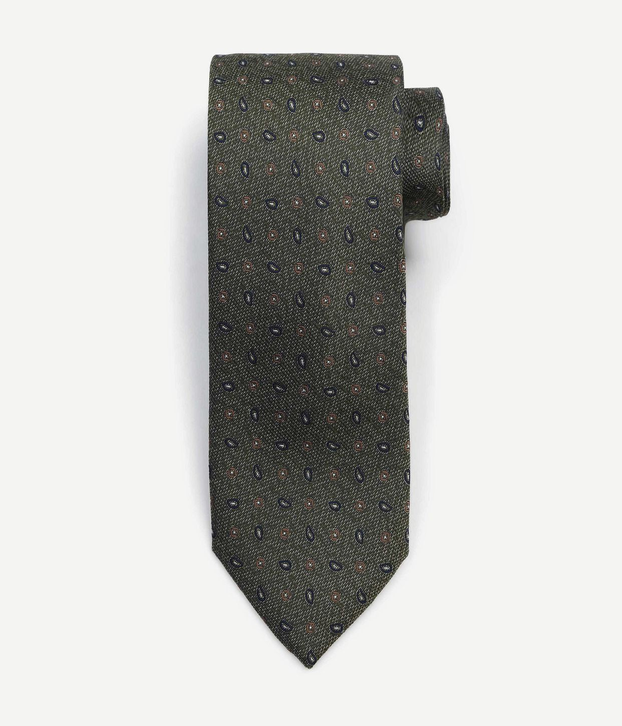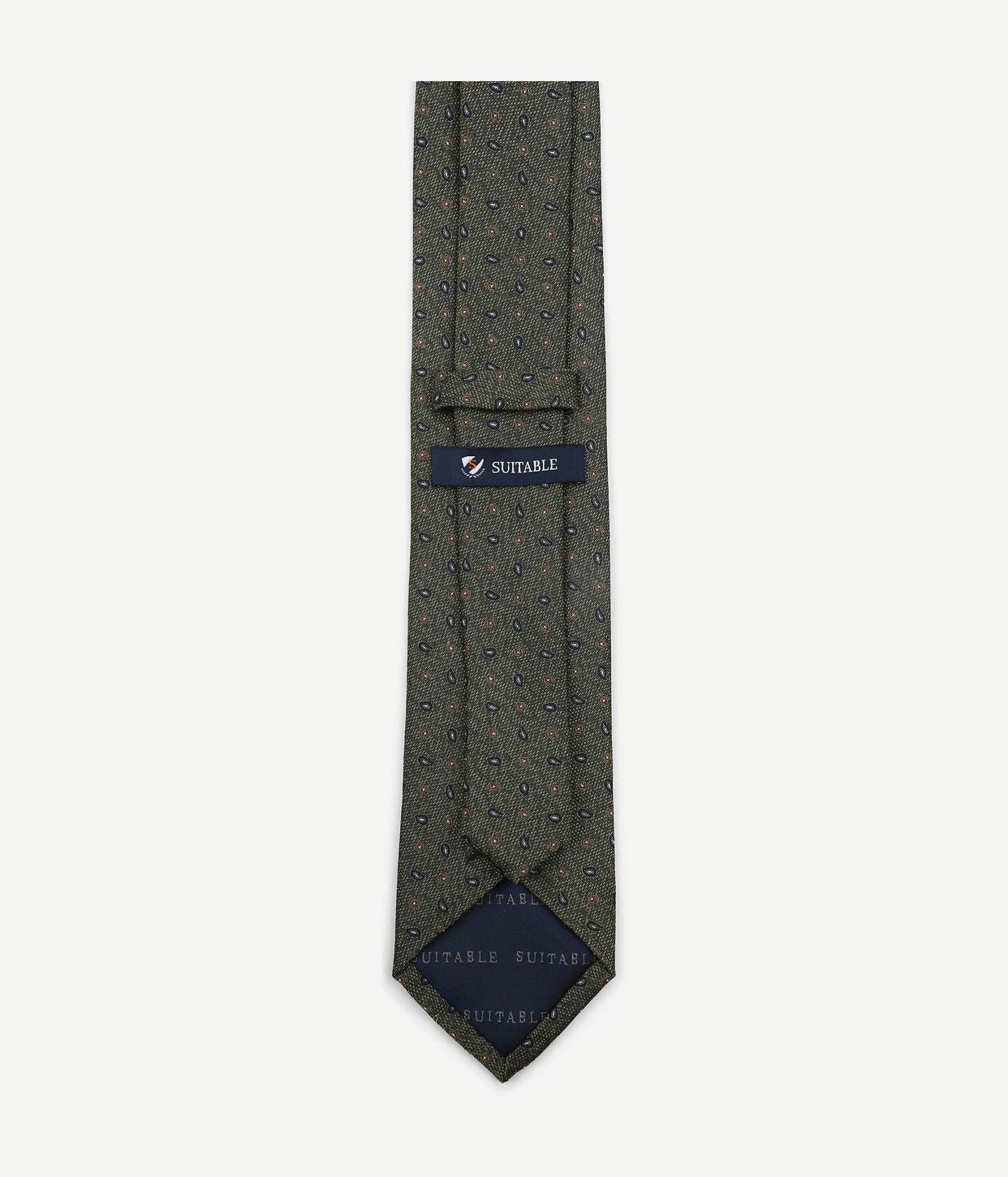 Met de Suitable Stropdas van zijde met een klein paisley patroon in olijfgroen, geeft u uw formele outfit een stijlvolle touch. De zijden stof zorgt voor een luxe uitstraling en soepel vallende knoop. Bovendien is zijde duurzaam en kreukbestendig, waardoor u de das keer op keer met trots kunt dragen. Combineer deze stropdas met een marineblauw pak en een wit overhemd voor een verfijnde uitstraling. - Dessin: Paisley - Samenstelling: 100% zijde - Afmetingen: 7,5 cm x 150 cm