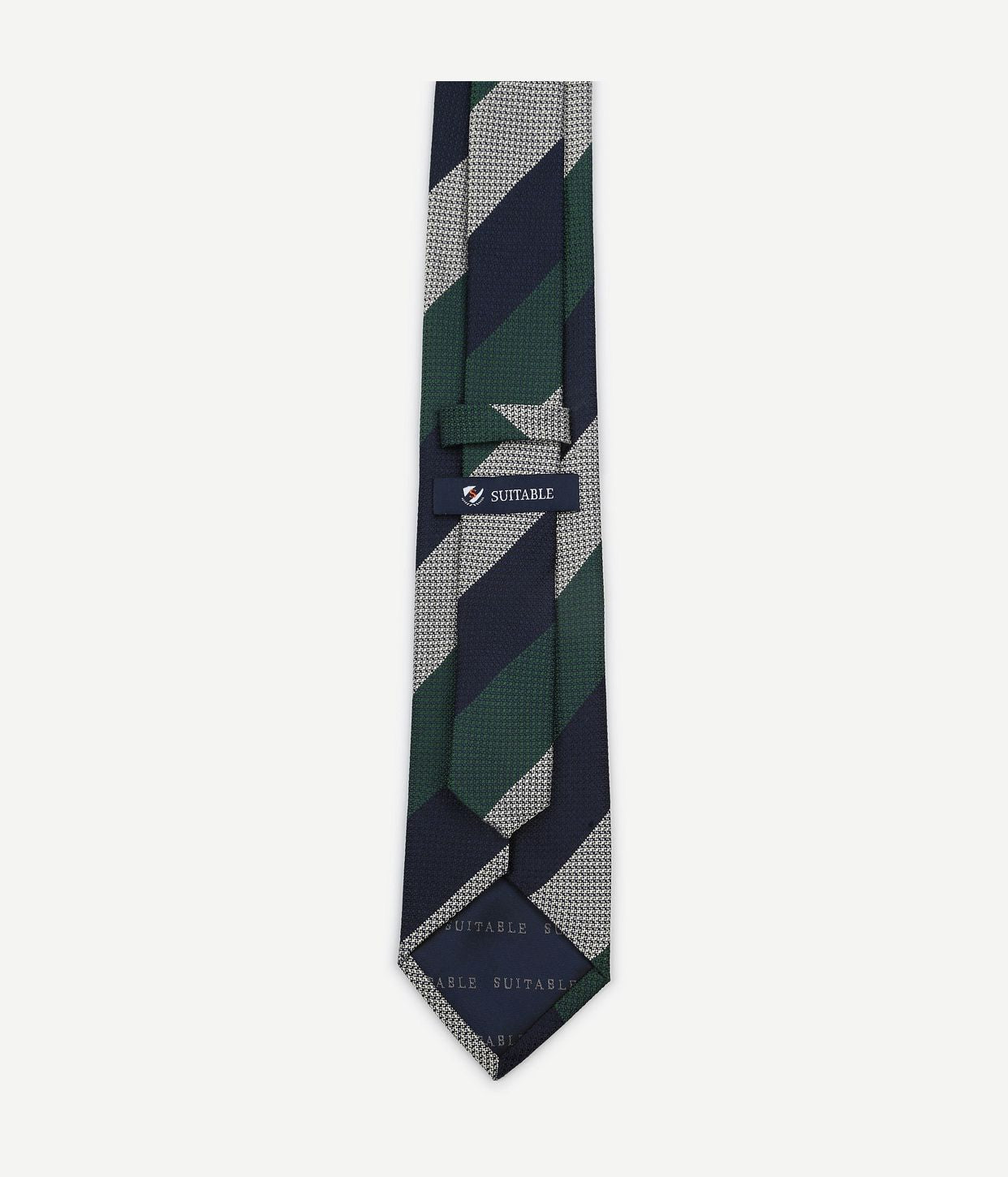 Suitable stropdas zijde wide stripe donkerblauw groen