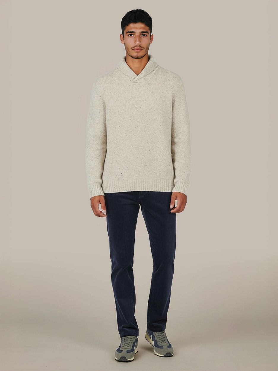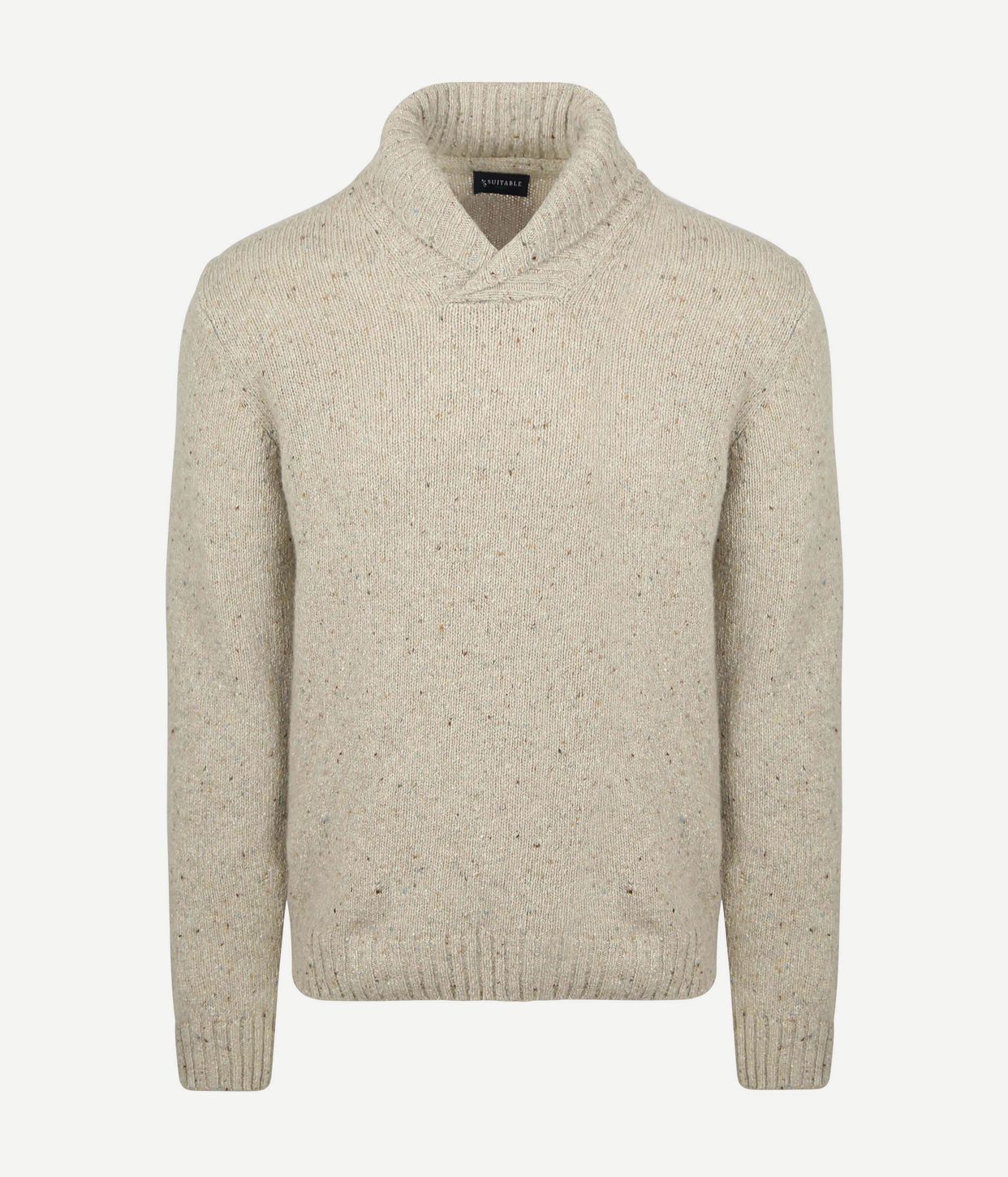 Suitable Trui Shawl Tweed Eco Wool Ecru - Voor een tijdloze look van topkwaliteit, kies deze mooie trui van Suitable. Gemaakt van 100% duurzame Eco Wool waarvan 60% wol, is deze trui niet alleen stijlvol maar ook warm en comfortabel. Met een moderne pasvorm en elegante shawlkraag, is dit kledingstuk perfect voor elke gelegenheid. Stijlvol en duurzaam tegelijk, ideaal voor de bewuste man.