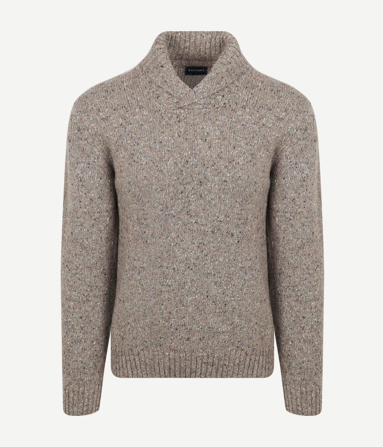 De Suitable Trui Shawl Tweed Eco Wool in taupe is een tijdloze toevoeging aan uw garderobe. Gemaakt van een mix van hoogwaardige materialen, waaronder wol, biedt deze trui warmte en comfort van hoge kwaliteit.
