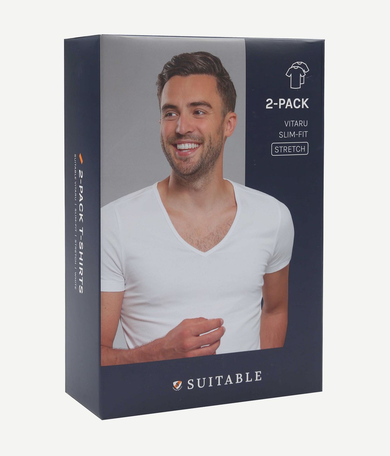 Suitable Vitaru t-shirt diepe v-hals wit (2-pack)