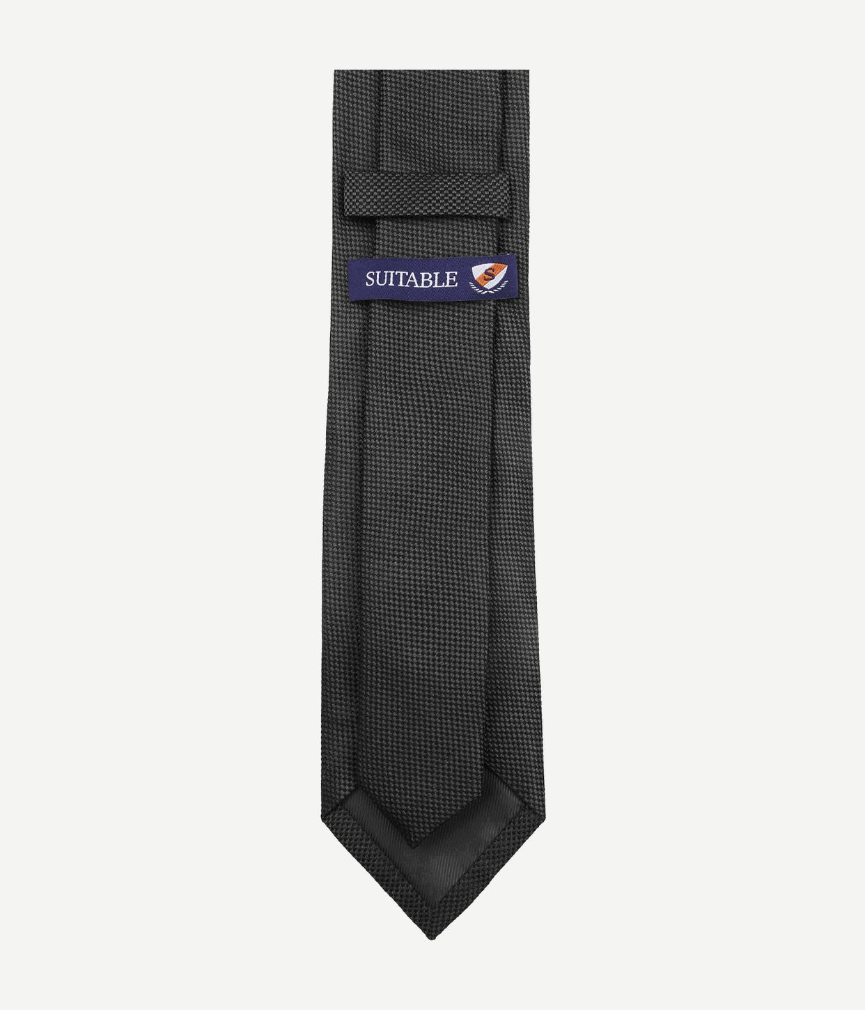 Dankzij de neutrale antracietkleur laat deze stropdas zich gemakkelijk combineren met zowel lichte als donkere overhemden, ideaal voor formele gelegenheden of als stijlvol detail in uw dagelijkse zakelijke outfit. Een elegant paar manchetknopen van Suitable maakt uw outfit compleet.