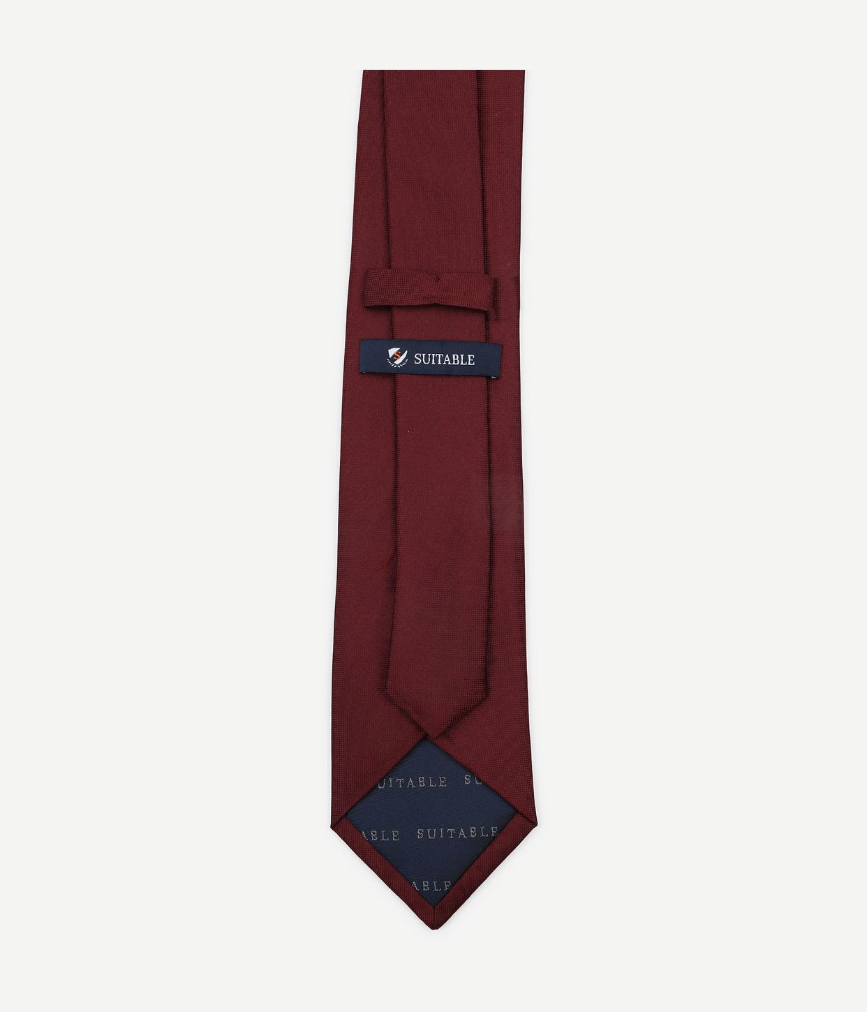 Met de Suitable Bordeaux Zijde Stropdas voegt u een vleugje elegantie en verfijning toe aan uw outfit. Deze stropdas is gemaakt van 100% zijde en heeft een breedte van 7,5 cm, wat zorgt voor een klassieke uitstraling. Het zijden materiaal biedt een luxueuze glans en een soepele afwerking, waardoor u er stijlvol uitziet en zich comfortabel voelt. Combineer deze stropdas met een bijpassend zakelijk overhemd en een Suitable zijden pochet voor een complete klassieke look. - Dessin: Effen - Samenstelling: 100% zijde - Afmetingen: 7,5 cm breed, lengte niet gespecificeerd
