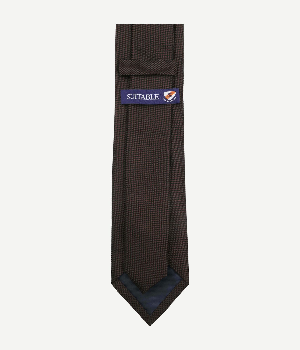 Verrijk uw garderobe met deze verfijnde Suitable Zijde Stropdas in stijlvol bruin. De stropdas is gemaakt van het edele materiaal zijde, wat niet alleen zorgt voor een mooie glans, maar ook voor een luxe uitstraling. Dankzij de breedte van 7 cm is deze stropdas geschikt voor zowel zakelijke als formele gelegenheden. Te combineren met een overhemd en kostuum van Suitable voor een complete en stijlvolle look. De effen weefstructuur en de hoogwaardige afwerking benadrukken de kwaliteit van deze stropdas.