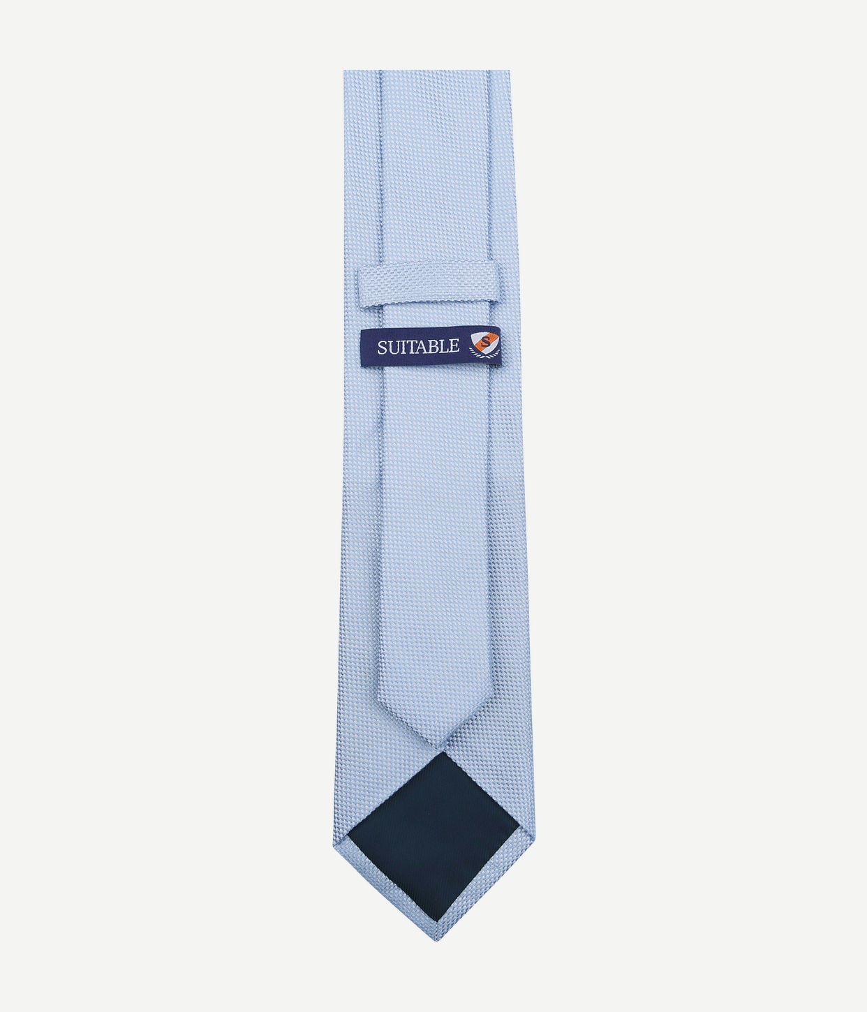 De stropdas maatregel 7cm in breedte, de perfecte breedte voor een traditionele knoop. We raden aan om deze lichtblauwe stropdas te combineren met een overhemd en pak van Suitable, voor een afgewerkte en coherente uitstraling.